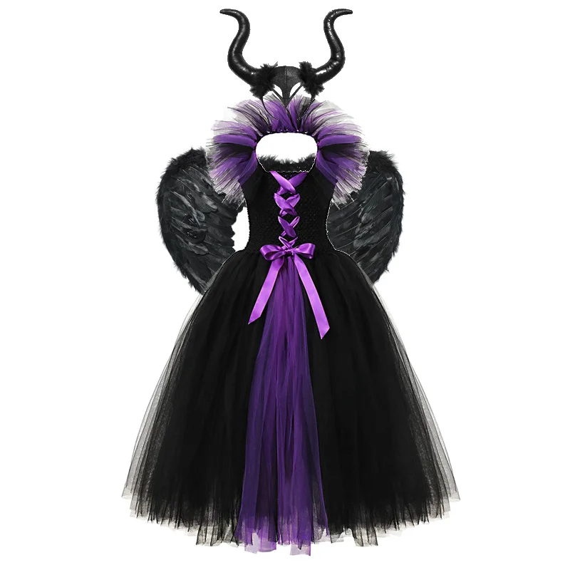 Детский костюм на Хэллоуин, малефисент, черный костюм-пачка дьявола...