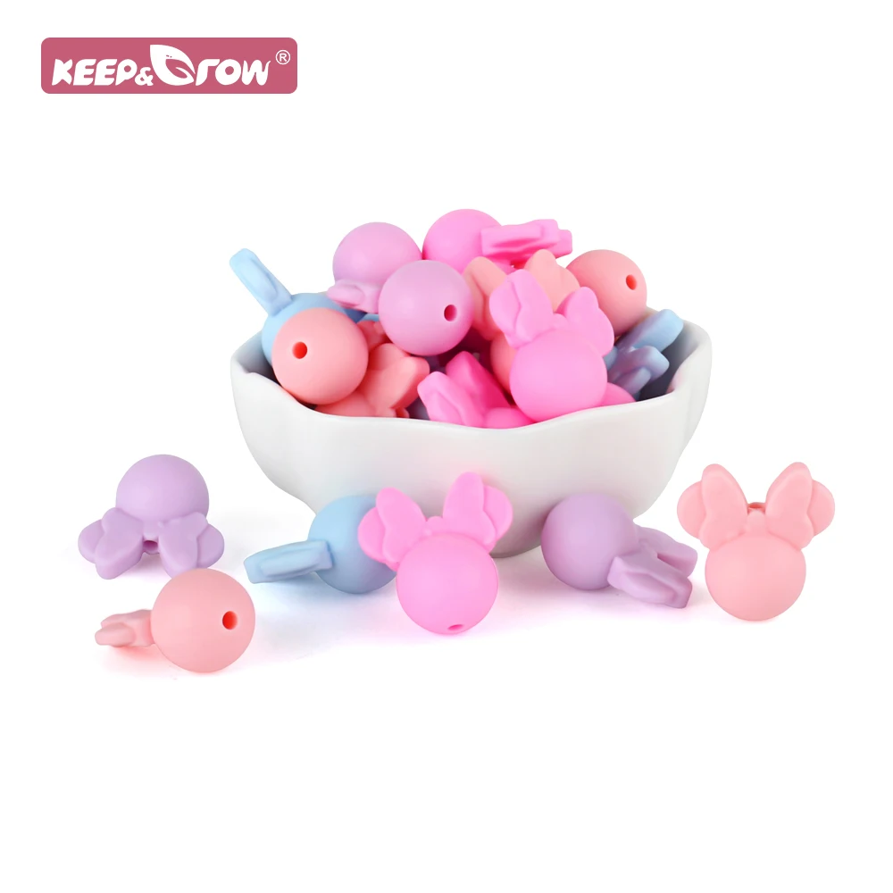 20 шт./лот, бусины в форме Минни, Силиконовые Прорезыватели для прорезывания зубов без бисфенола А, силиконовые бусины для прорезывания зубов «сделай сам», аксессуары для ожерелий