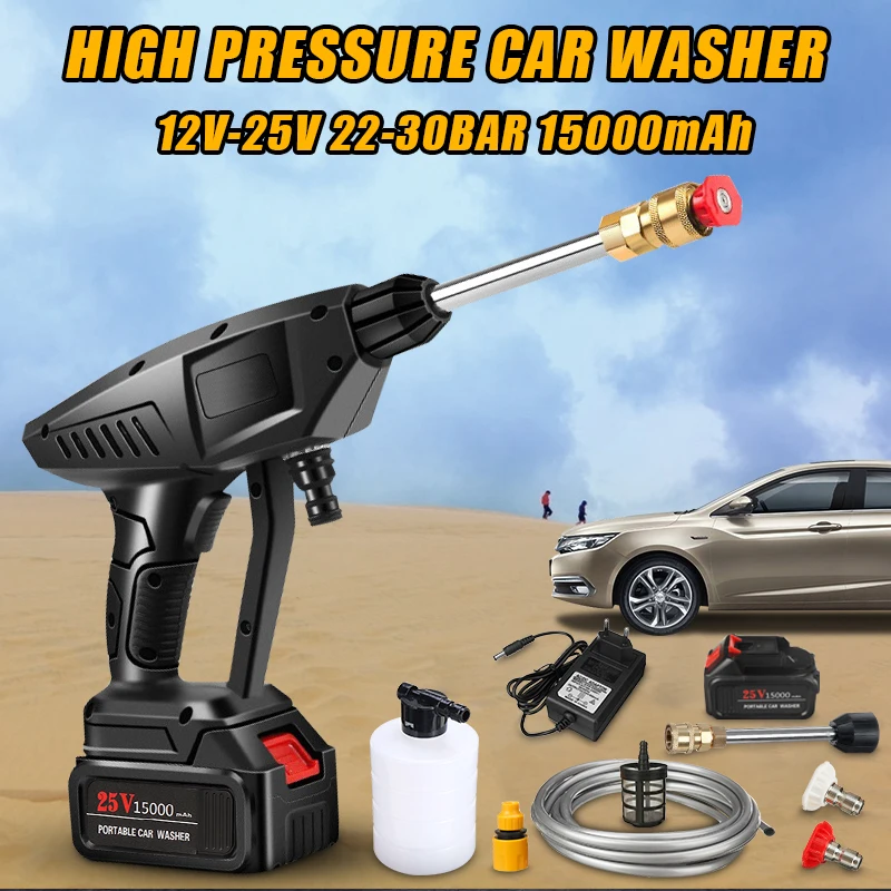 Тип F Модель: 21V-с 2pcs 15000mAh батареей Емкость аккумулятора:15000 мАч Мощность:240 Вт Давление на выходе:30Bar/435PSI Посылка включает в себя: 12 шт.