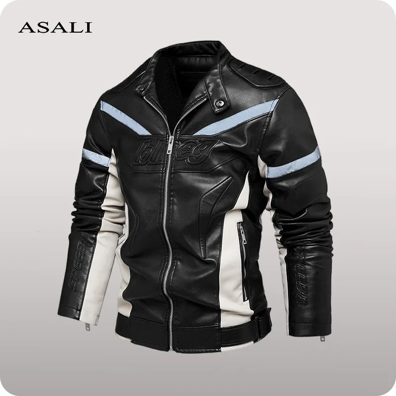 Зимняя мужская кожаная мотоциклетная куртка, новая модная Лоскутная...