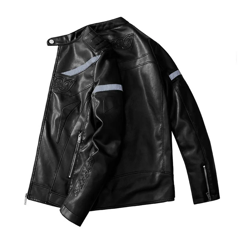 Куртка мужская Светоотражающая из ПУ кожи, флисовое пальто, Повседневная Байкерская верхняя одежда из искусственной кожи, Осень-зима