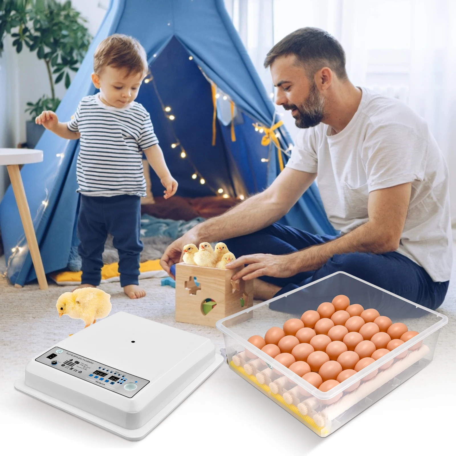 Простое управление благодаря автоматическим функциям; Идеально подходит для хобби и учебных занятий даже вне фермы; Подходит для куриных яиц, утиных яиц, гусиных яиц и голубиные яйца