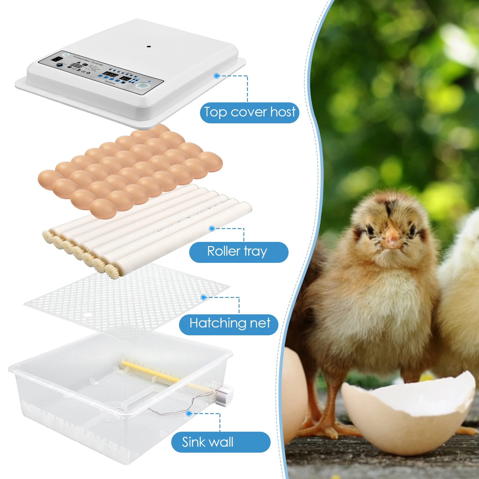 ·Универсальный дизайн: Этот инкубатор подходит для инкубации всех птиц-кур, уток, гусей, перепелов, птиц, голубей и т. д. Прозрачная основа для видимости инкубационных яиц, идеально подходит для уроков инкубации и демонстраций