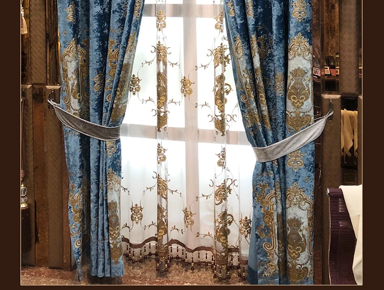 Роскошные бархатные шторы в европейском дворцовом стиле, резные золотистые синие виллы, для гостиной, столовой, спальни