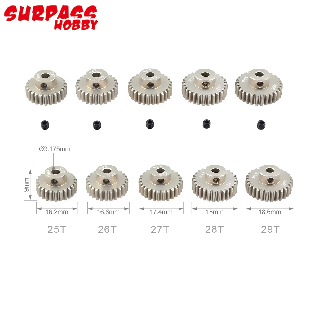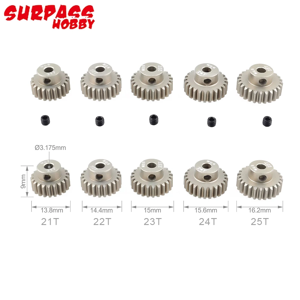 2 шт.лот Surpass Hobby M0.6 13T14T15T16T17T18T19T20T21T 3,175 мм вал, алюминиевый Шестеренчатый редуктор для внедорожника 18 110
