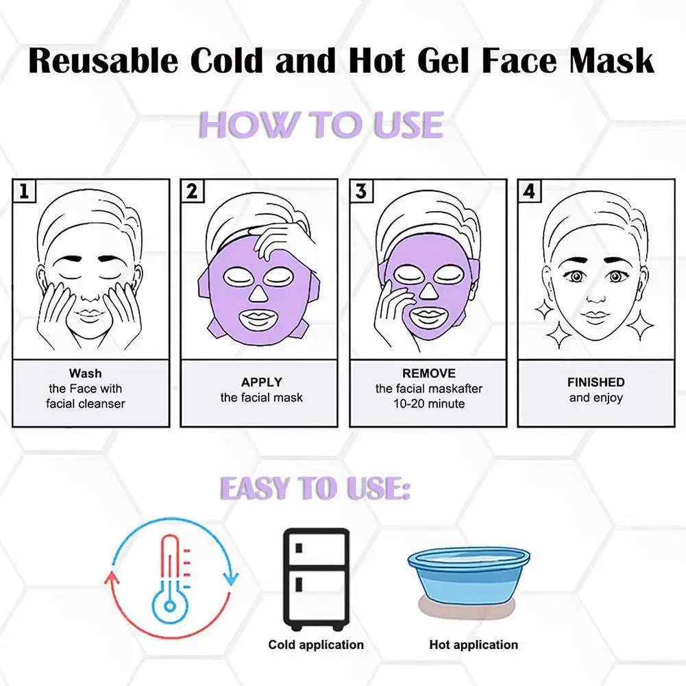 1. Горячий и холодный режим: горячий и холодный гель masque используется для холодного сжатия или горячего сжатия. Уменьшает темные круги и усталость глаз. Это также может помочь вам улучшить сон, снять усталость лица и сделать вашу кожу гладкой.