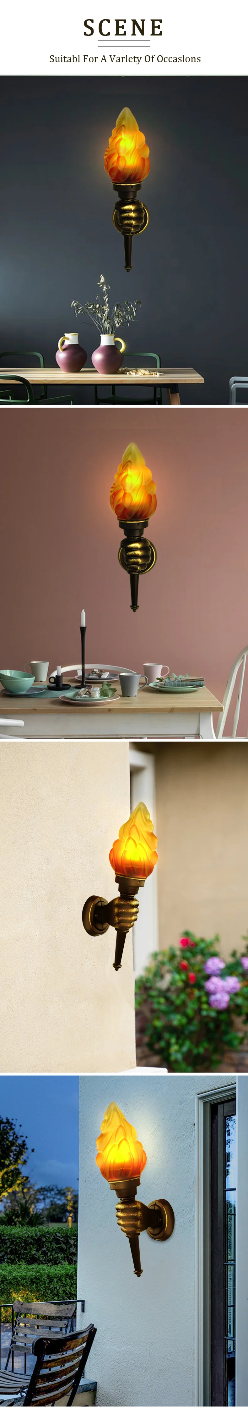 Светильник Настенный в американском стиле ретро, лампа для украшения стен гостиной, балкона, бара, ресторана, ИНН, бра с пламенем для садового фойе, двора, уличное освещение