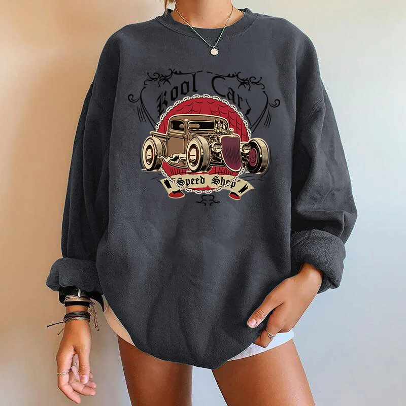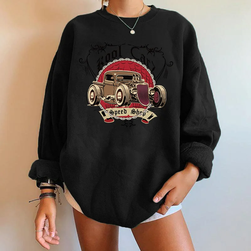 Женские винтажные свитшоты с длинным рукавом и принтом машины, свитшоты с открытыми плечами, уличная одежда, винтажные Топы Las Mujeres, свитшоты