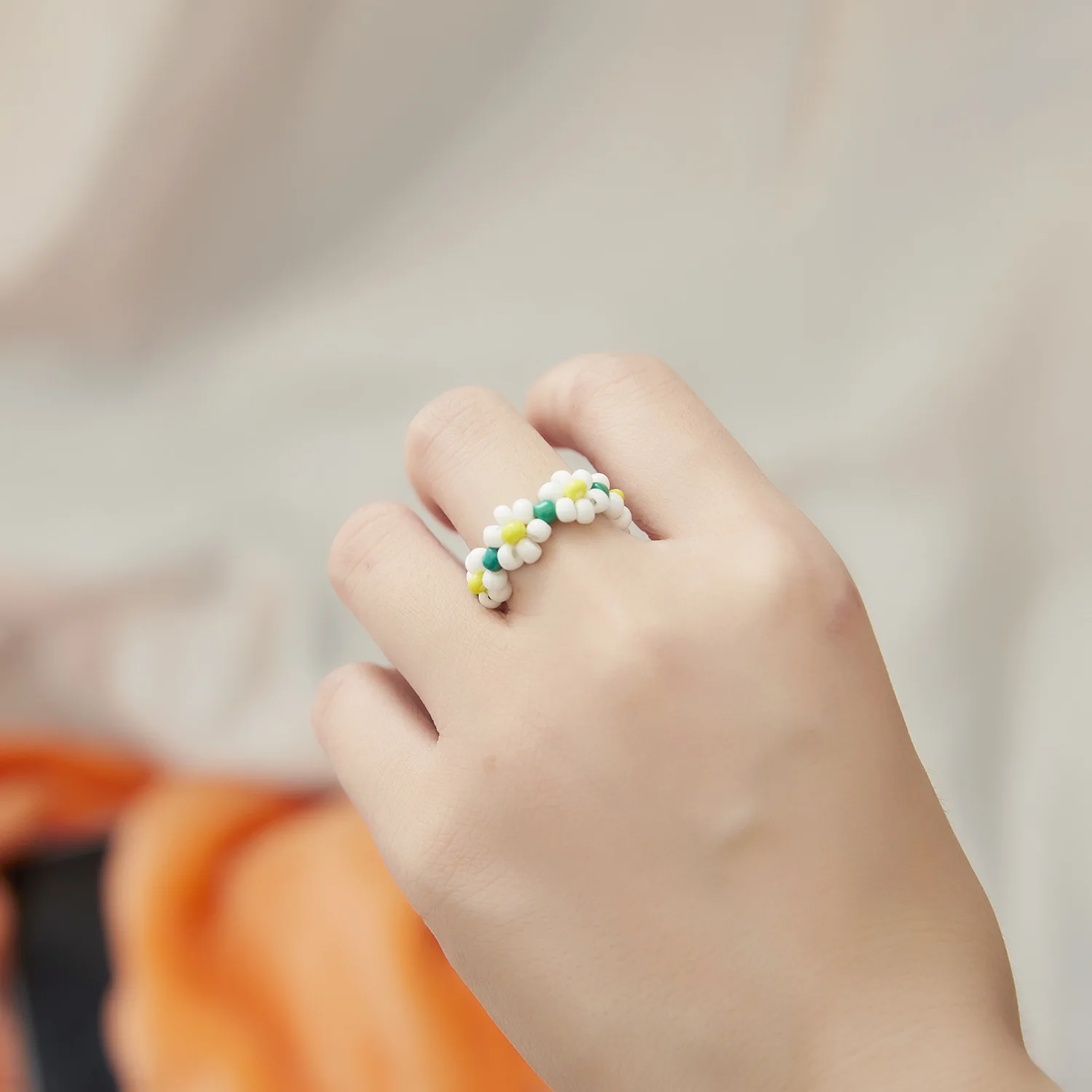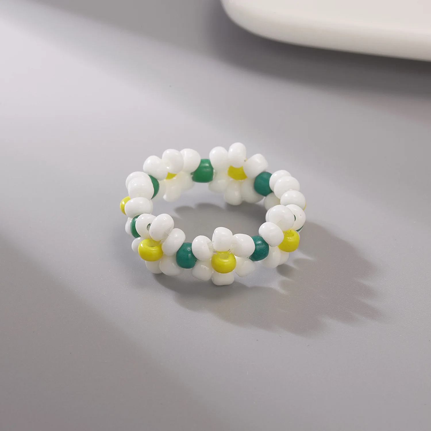 Корейское модное прозрачное акриловое цветочное кольцо ручной работы с цветными бусинами, эластичное кольцо для женщин и девушек, вечерние ювелирные изделия, подарок