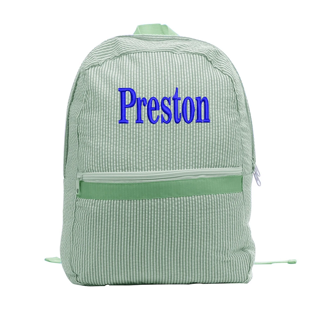 Школьный ранец Monogrammed в полоску Seersucker с изолированными ка...
