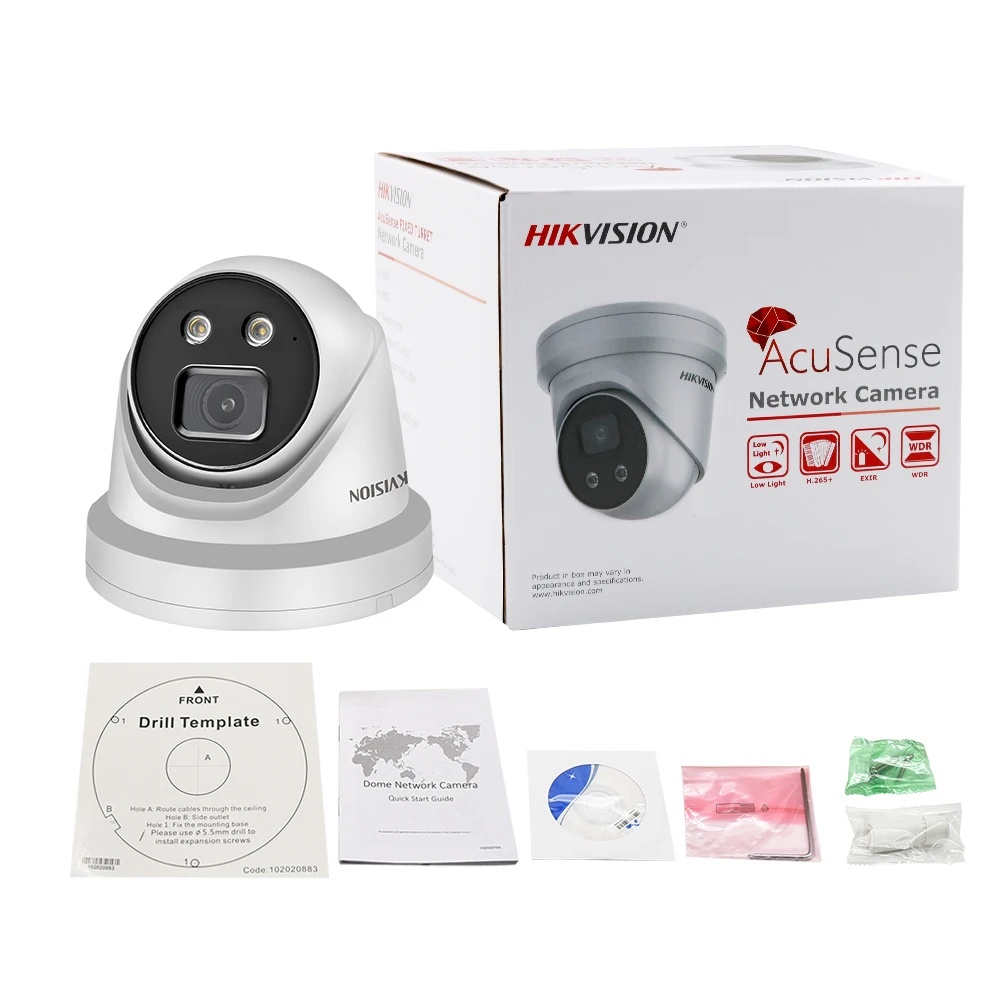 Упаковочный лист: 1. 1 Оригинальная ip-камера Hikvision DS-2CD2386G2-ISU/SL с оригинальной коробкой. (Выберите «без логотипа», вы получите камеру без логотипа и коробки без логотипа) 2. 1 руководство пользователя. 3. 1 водонепроницаемый штекер. 4. Инструмент для установки. 5. 1 сумка для винтов. 6. 1 шаблон сверла.