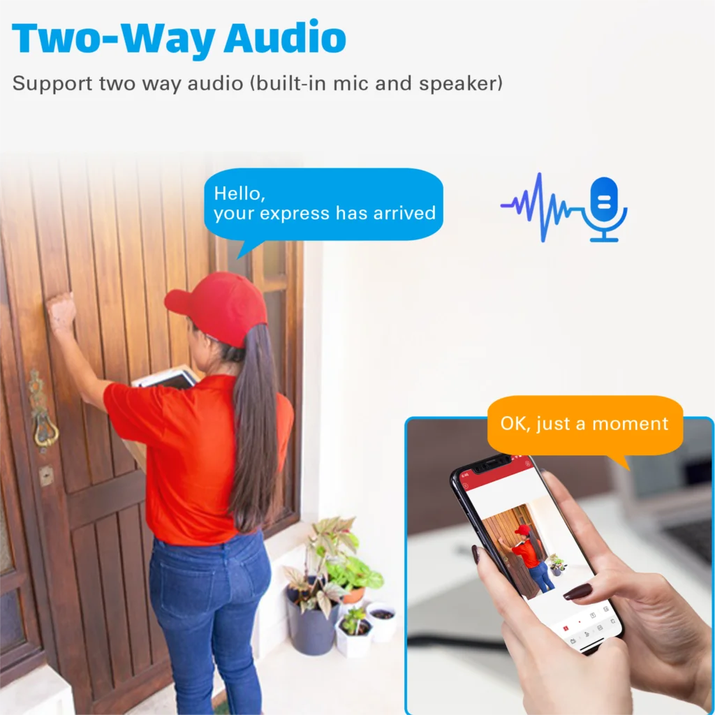 Обеспечивает безопасность в режиме реального времени с помощью встроенного двустороннего аудио