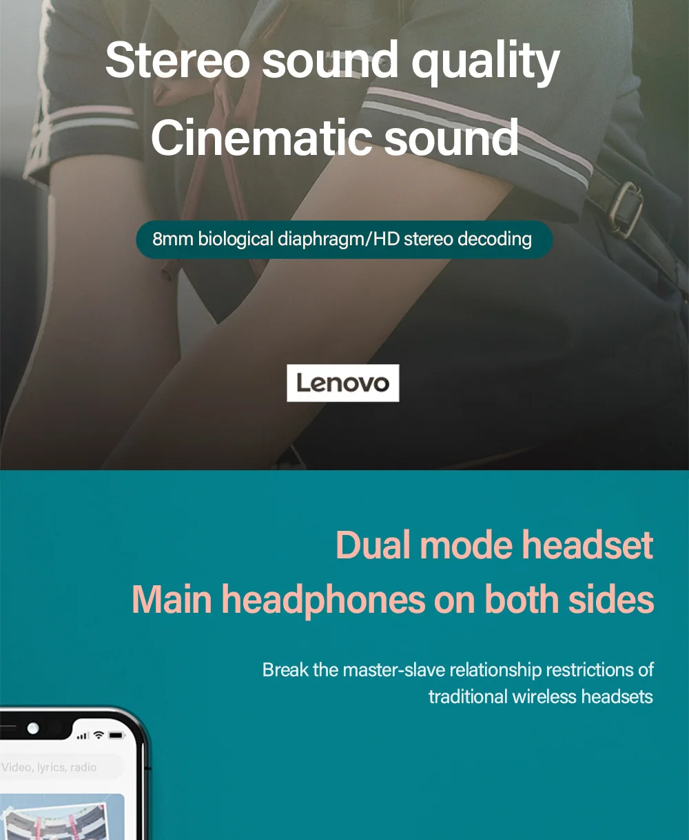 Оригинальные наушники Lenovo Xt91, беспроводная гарнитура, Bluetoot...