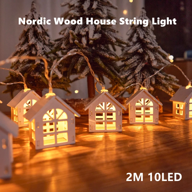 Сказочная гирлянда, 2 м, 10 светодиодов, деревянный дом, Рождественские огни, скандинавский маленький дом для рождества, свадьбы, вечеринки, праздника