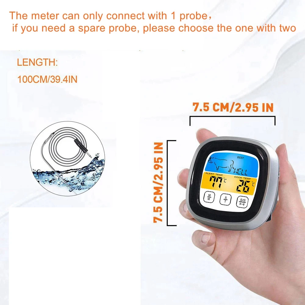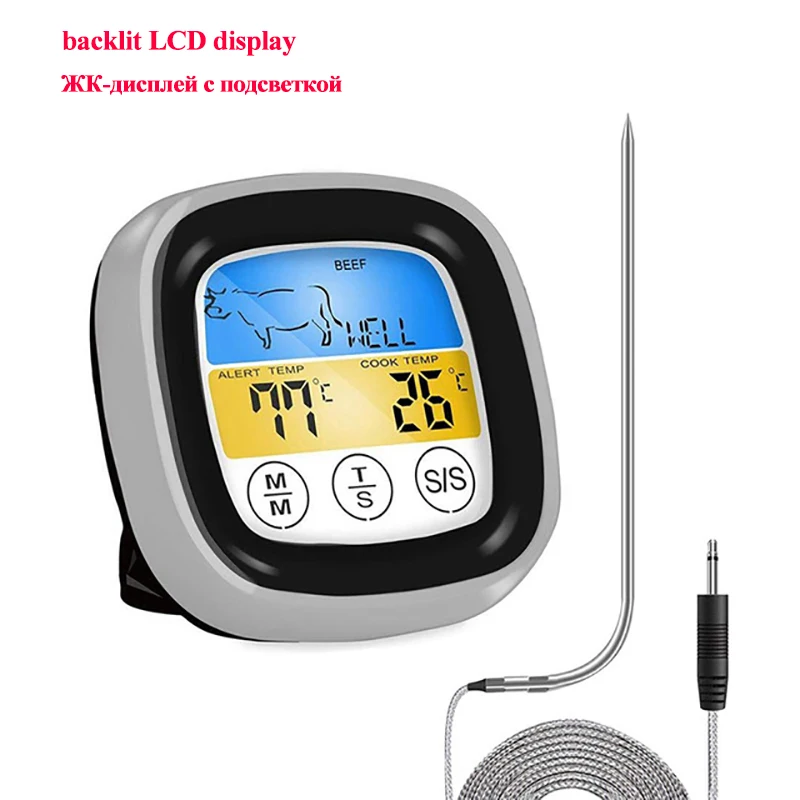 Цифровой кухонный термометр для мяса сенсорный экран из нержавеющей водонепроницаемой печи для приготовления барбекю измеритель температуры индикатор сигнализации