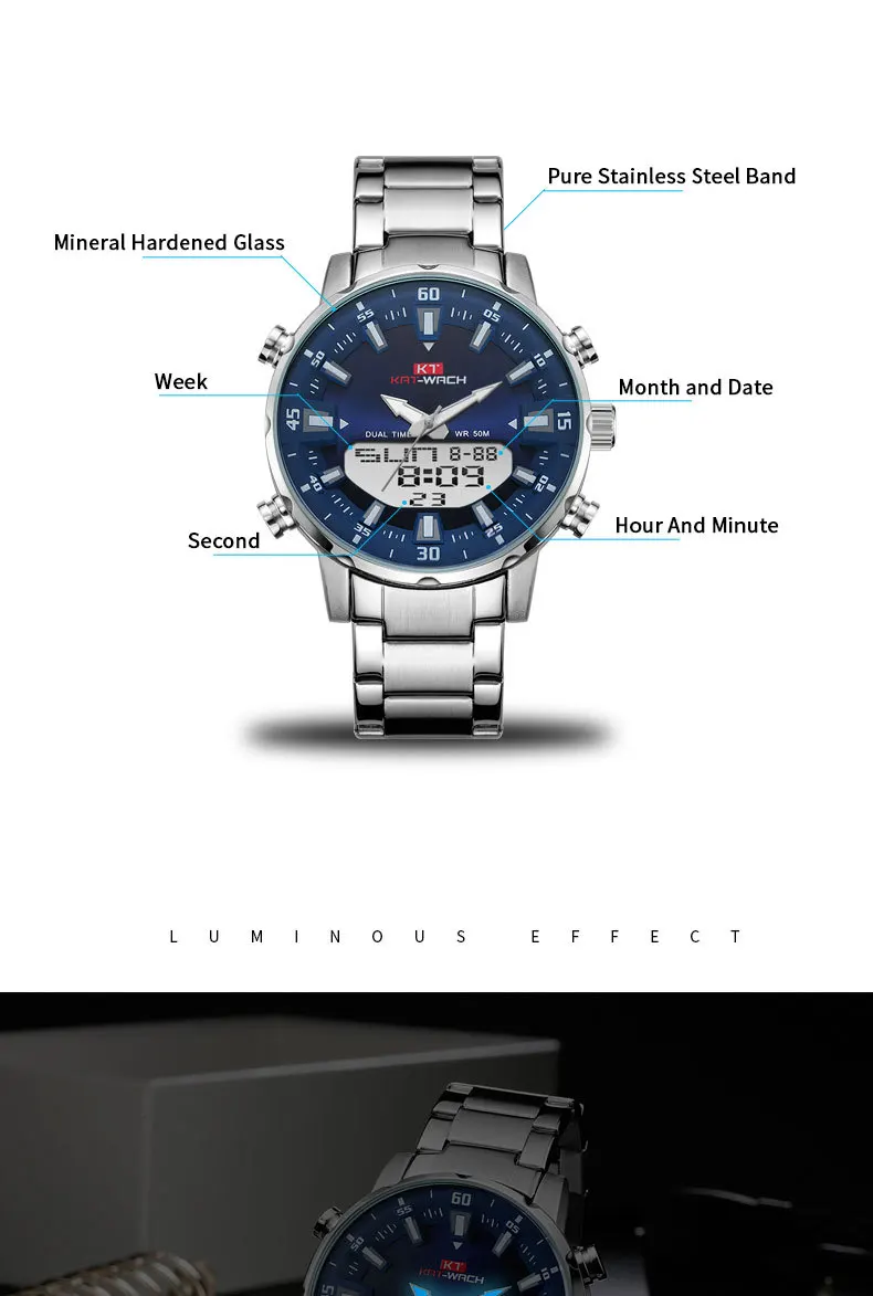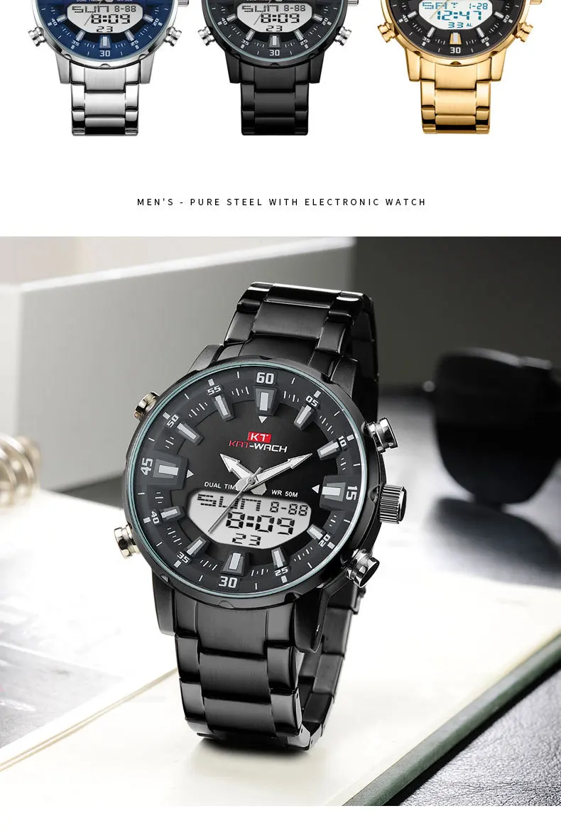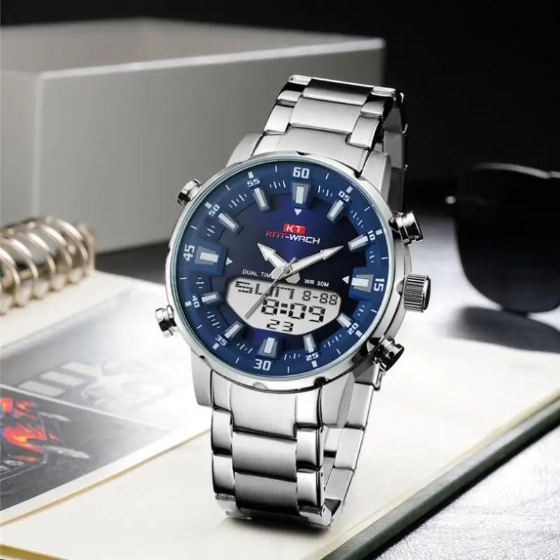 Мужские водонепроницаемые кварцевые часы из нержавеющей стали в стиле милитари