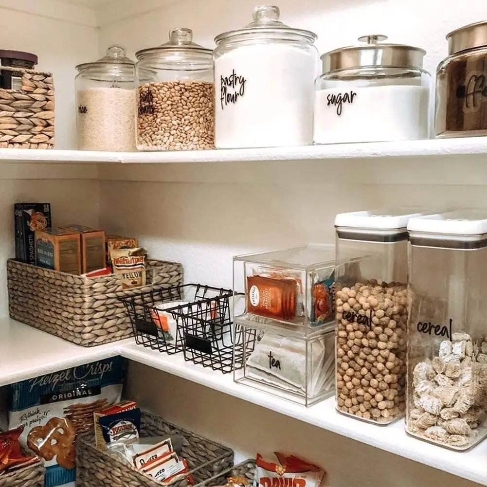 Этикетки-наклейки для кухни, кладовой, прозрачные водонепроницаемые этикетки с принтом, наклейки для пищевых продуктов, для контейнеров, банок для хранения, самоклеящиеся