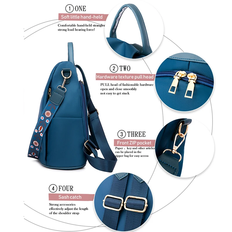 Женский портативный дорожный рюкзак с защитой от кражи, повседневный нейлоновый вместительный ранец для девушек, школьный портфель на плечо, популярный