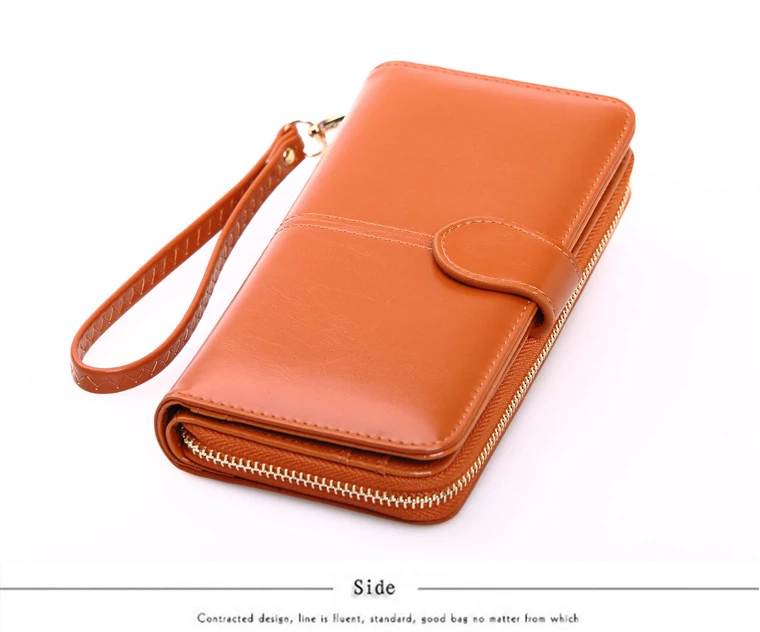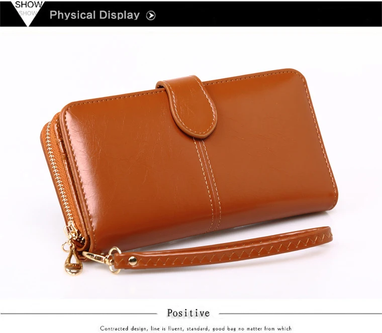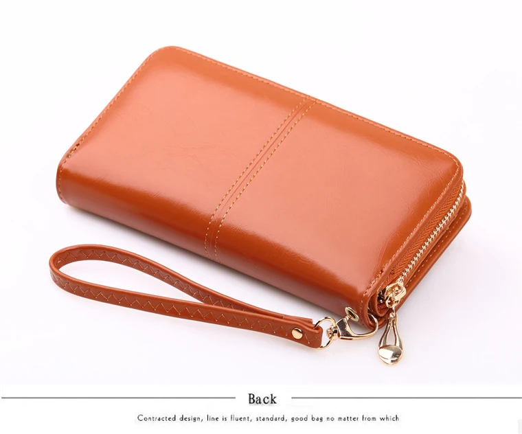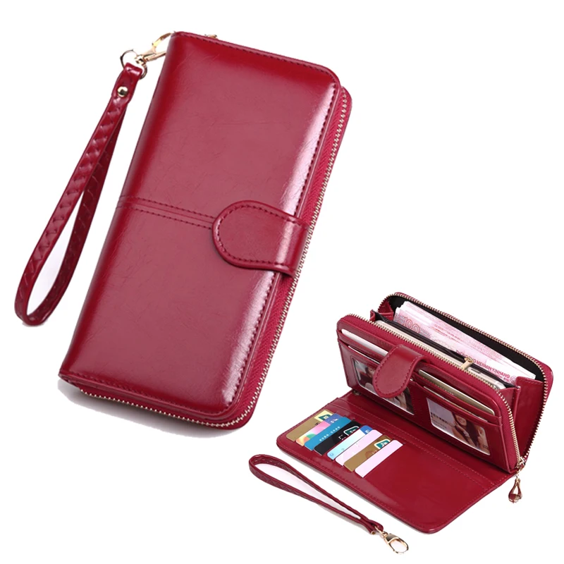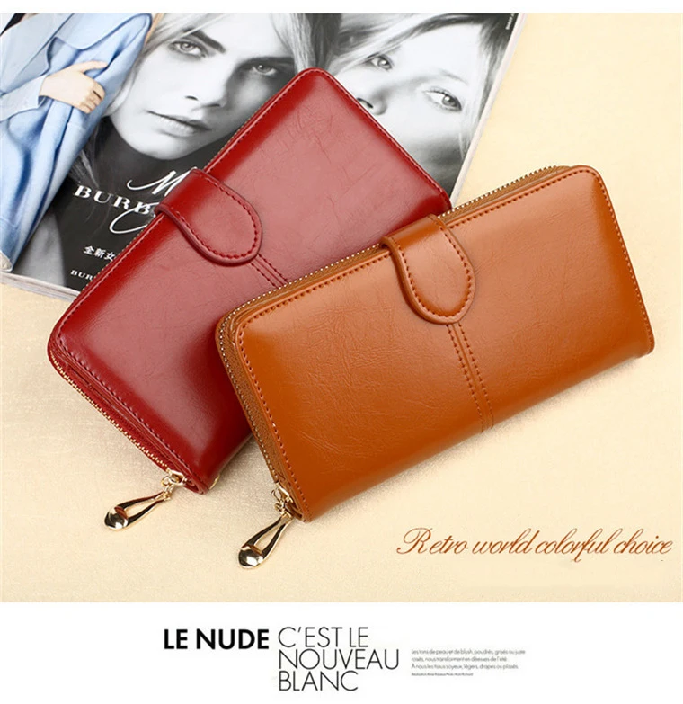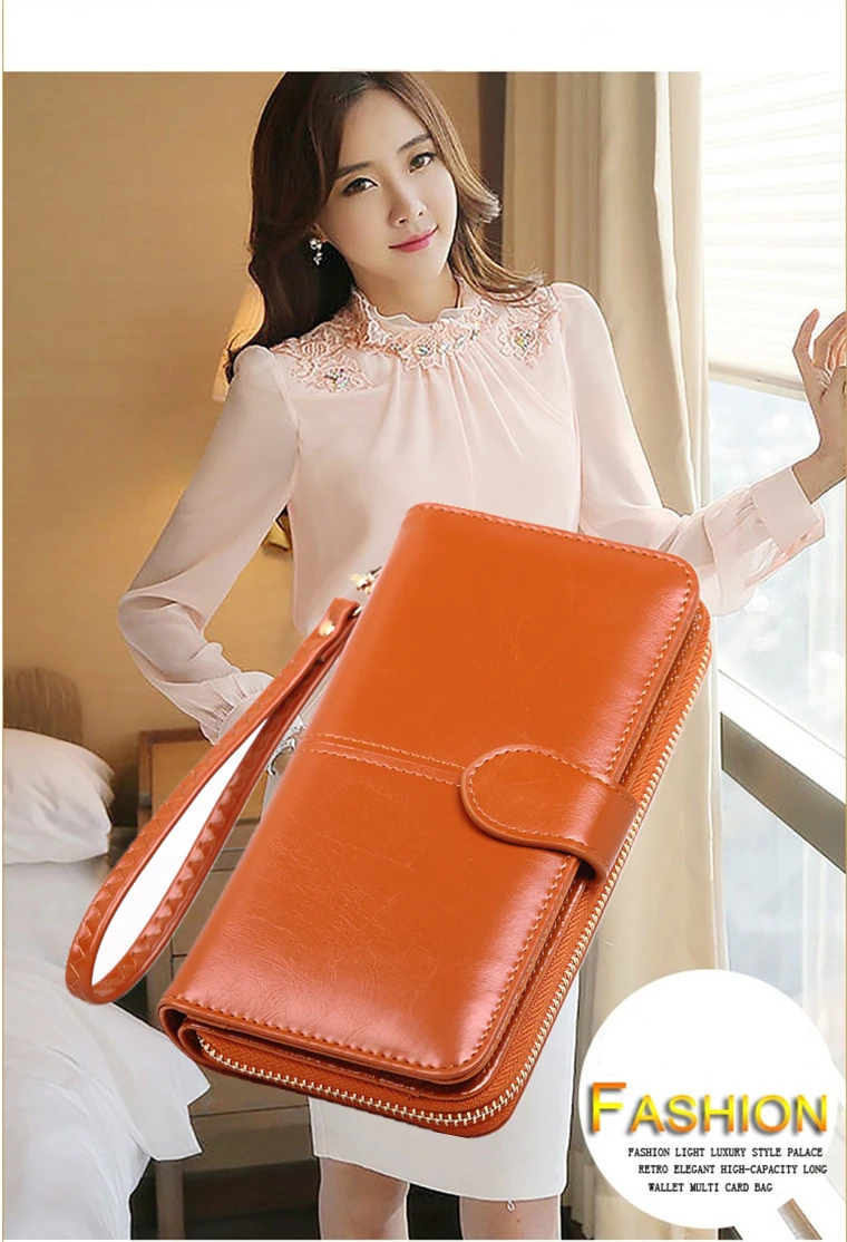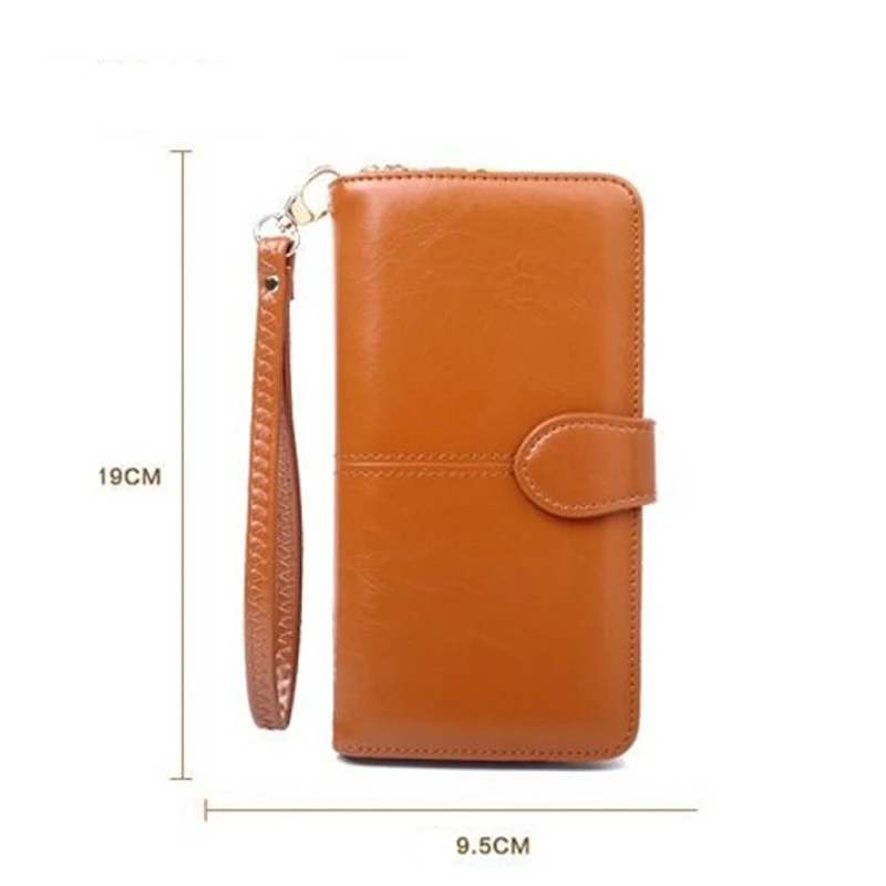 Модный женский вместительный кошелек из вощеной кожи, кошелек, Длинная женская сумка на молнии, кожаный кошелек с отделением для карт