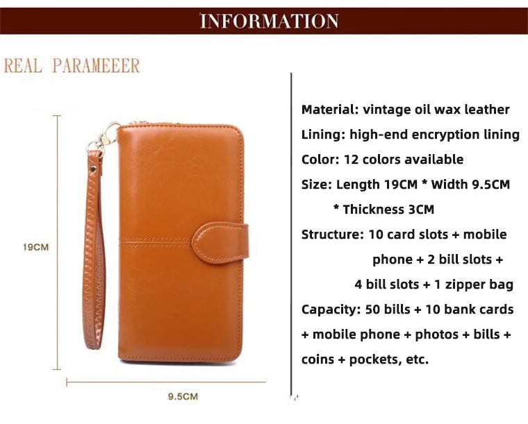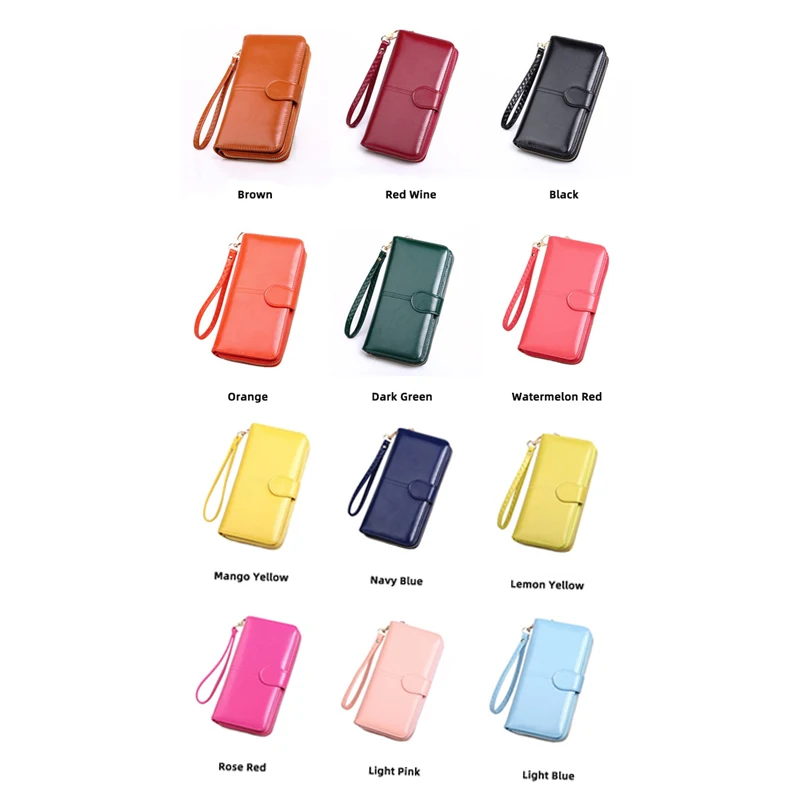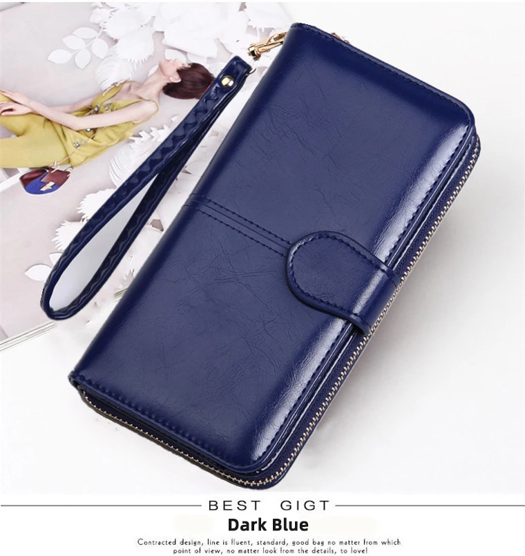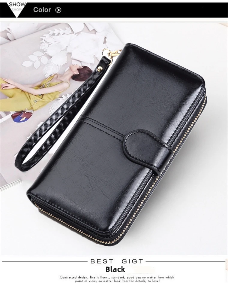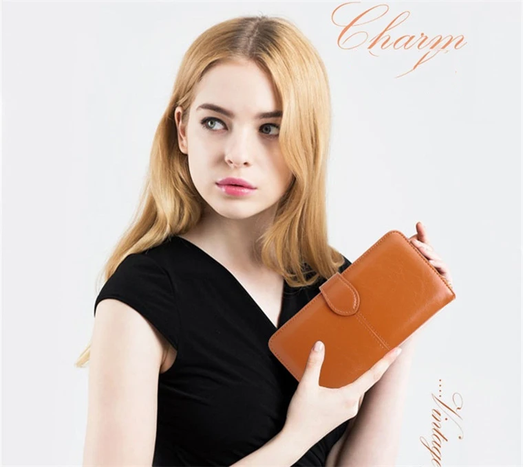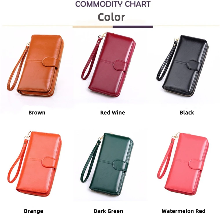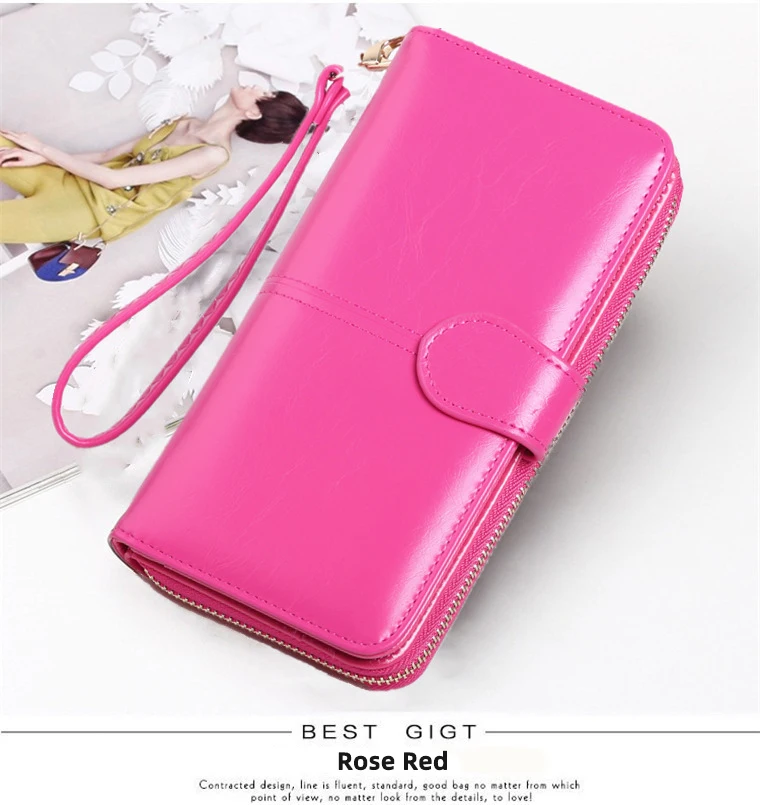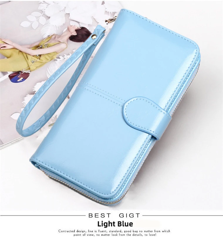Модный женский вместительный кошелек из вощеной кожи, кошелек, Длинная женская сумка на молнии, кожаный кошелек с отделением для карт