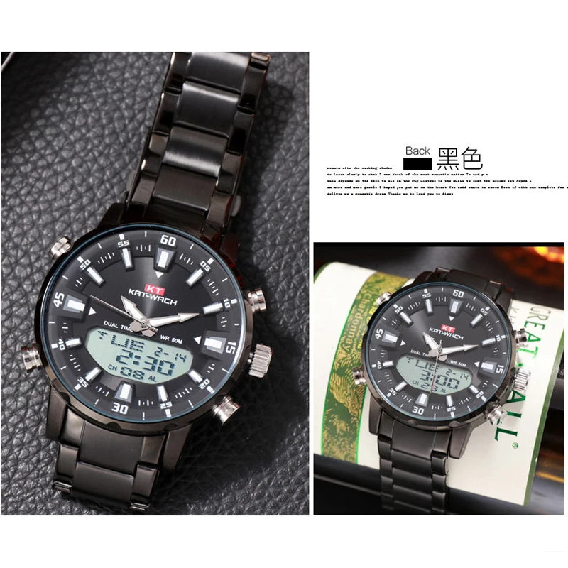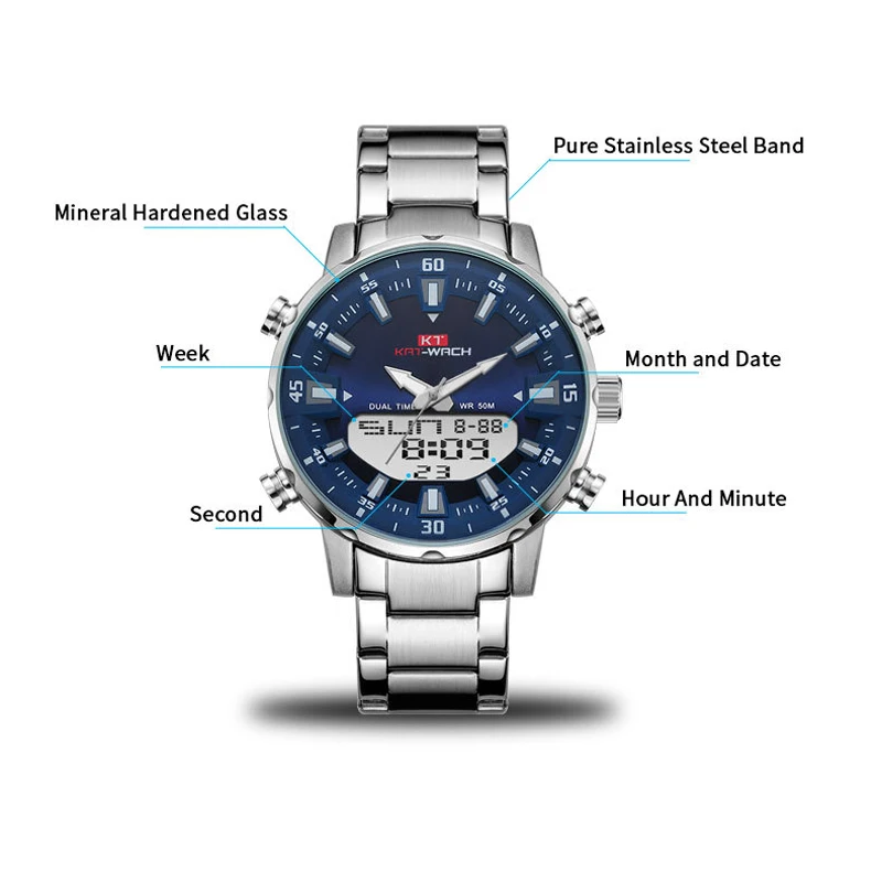 Часы мужские кварцевые, водонепроницаемые, 50 м, с двойным дисплеем