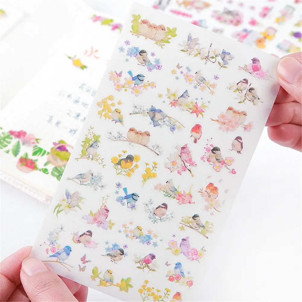 6 листов, Мультяшные цветы, кошка, бумажные наклейки для блокнота, дневника, фотографий, милые наклейки