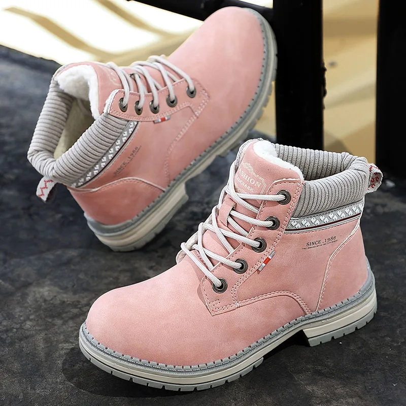 Женские зимние ботинки с шерстяной подкладкой, Теплые повседневные ботинки, обувь для женщин, уличные Нескользящие ботильоны со шнуровкой для скалолазания