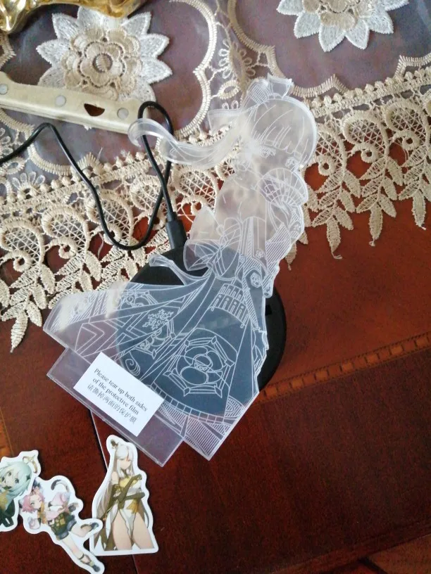 спасибо большое продавцу, что не проигнорировал мою просьбу, и хорошо упаковал посылку, все дошло идиально в воздушной упаковке в пупырке и в красивом подарочном пакете. А так же спасибо за подарок в виде стикеров с паймон, Чунь Юнем и Джинн. Сам светильник идёт с проводом, но можно использовать три батарейки типа АА. На фотографиях вырезанная часть с Аякой, все ещё с защитной пленкой(т.к. собираюсь подарить данный светильник подруге).