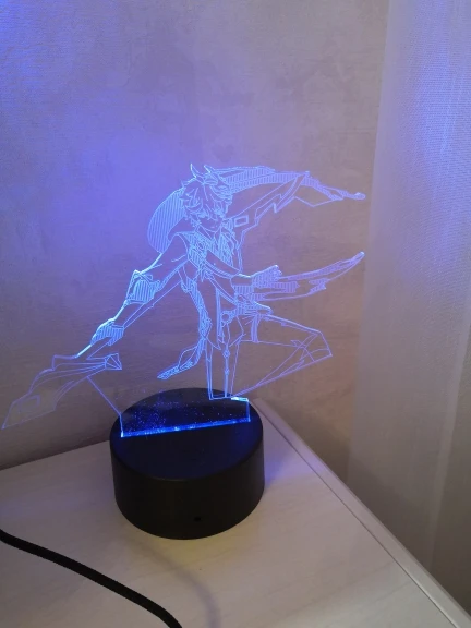 Заказ прибыл очень быстро, с защитой и в отличном состоянии. I Just ordered The lamp because I liked The Style. Looks beautiful and control allows you to change colors and modes. Он пришел с некоторыми подарочными наклейками, которые ценятся, потому что мы просто играем genshin♥️ Я рекомендую продавца.