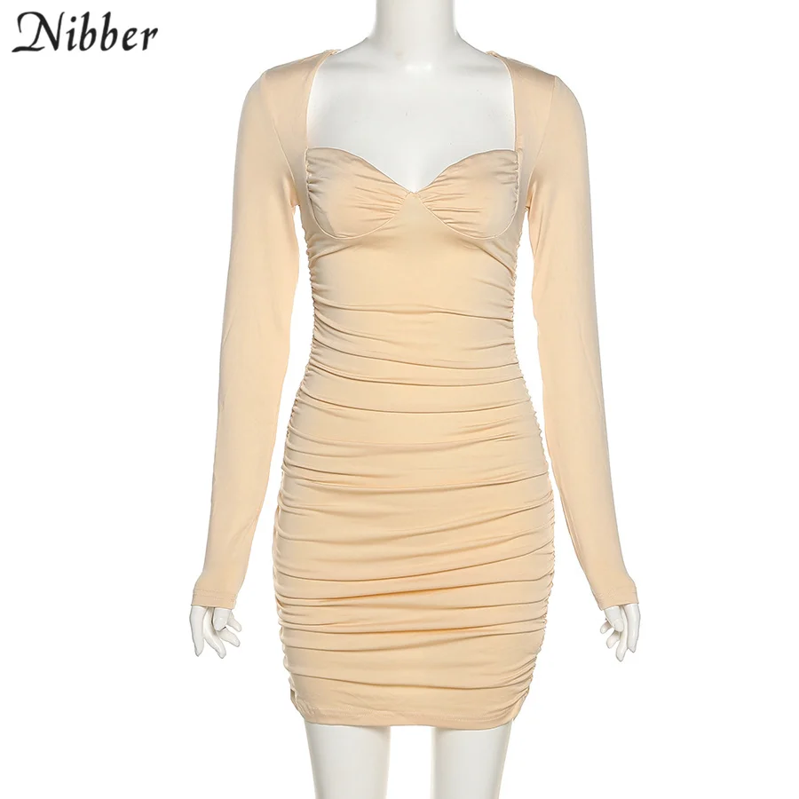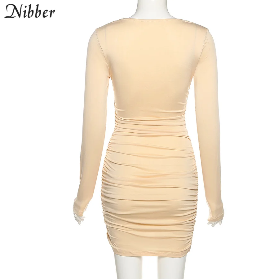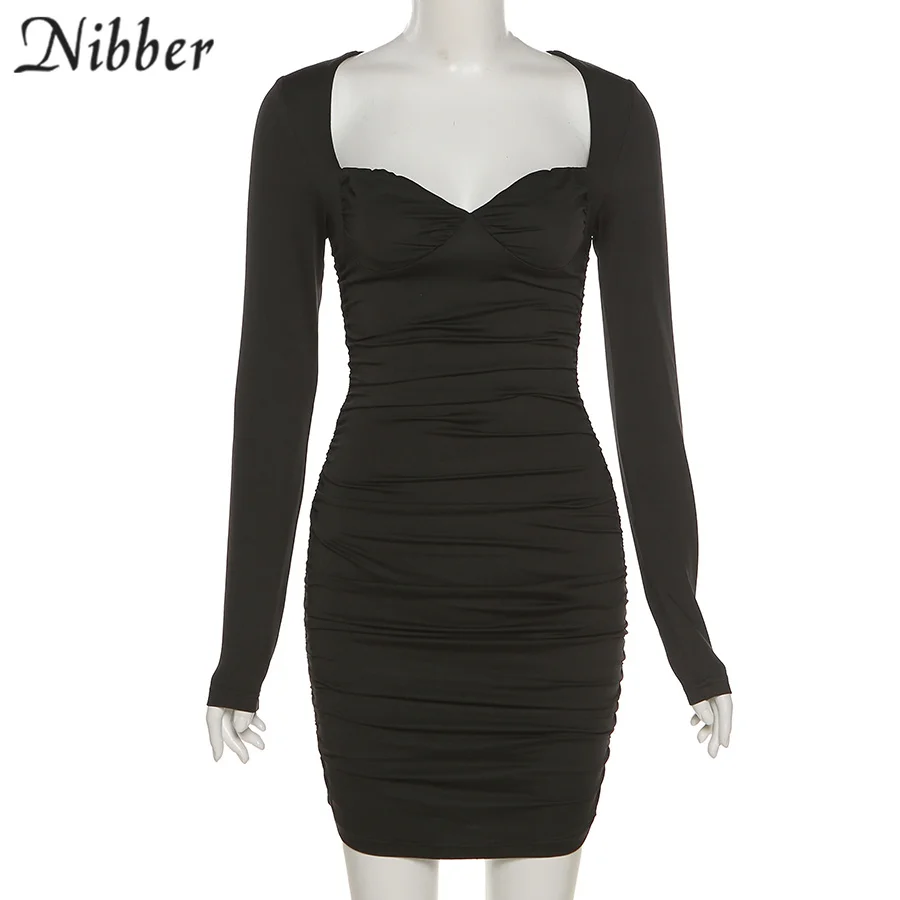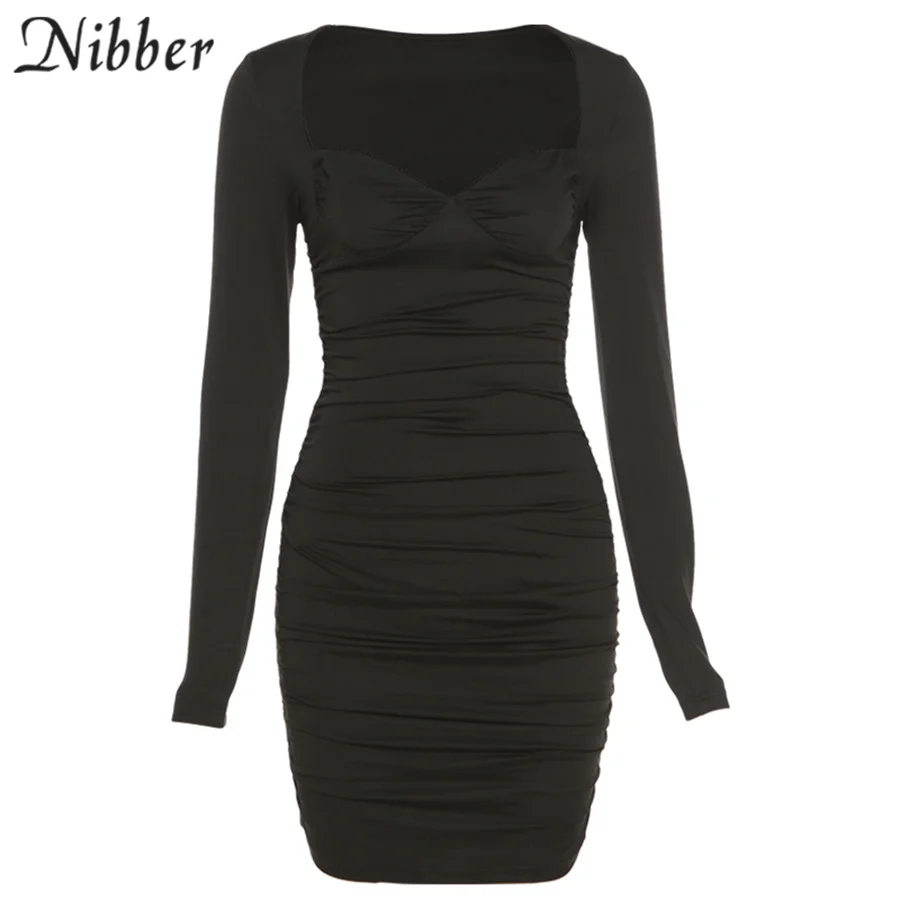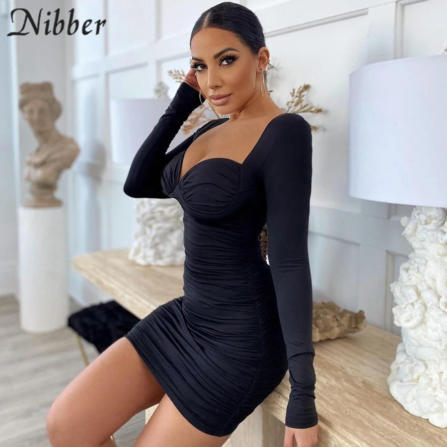 Новое однотонное мини-платье Nibber на раннюю осень, с длинным рукавом, плиссированное, для вечеринок, клубных вечеринок, 2021