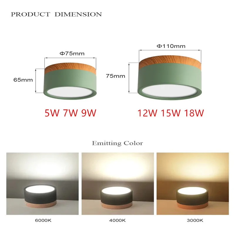 Светодиодный светильник Macaron с регулируемой яркостью 5W7W9W12W15W18W, потолочный светильник для поверхностного монтажа, украшение интерьера, скандинавский деревянный современный прожектор