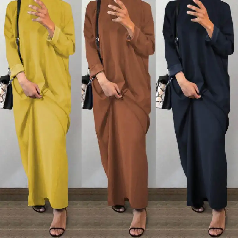 Сарафан женский в турецком стиле, свободная мусульманская одежда в турецком стиле, однотонный мусульманский сарафан с длинным рукавом, лето