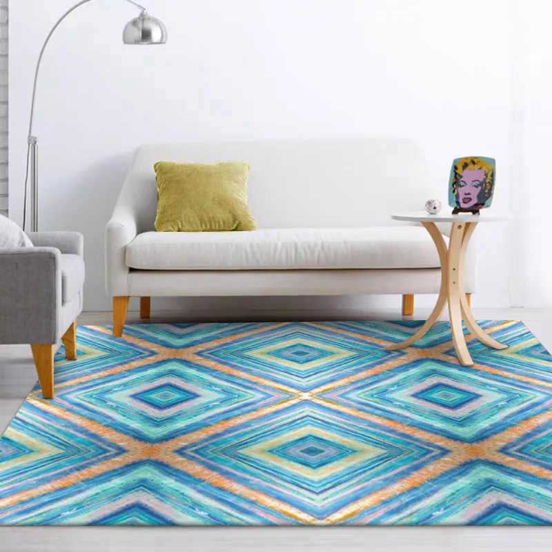 Скандинавский простой синий большой ковер в клетку с геометрическим рисунком, домашний декор, коврики для гостиной, игровой коврик для детской комнаты, спальни