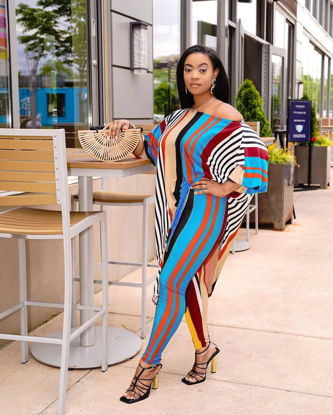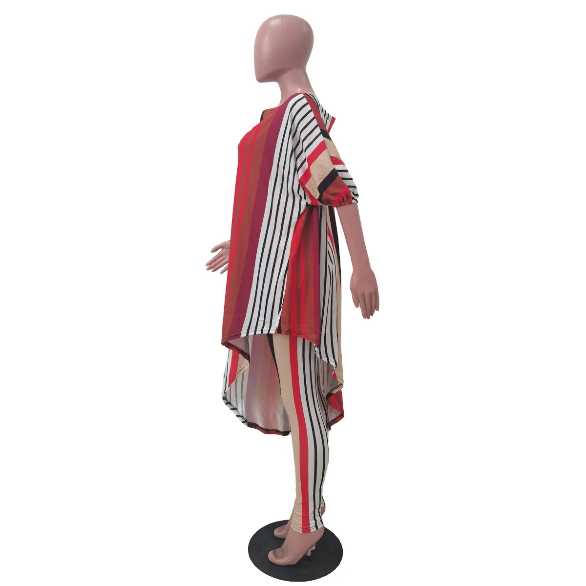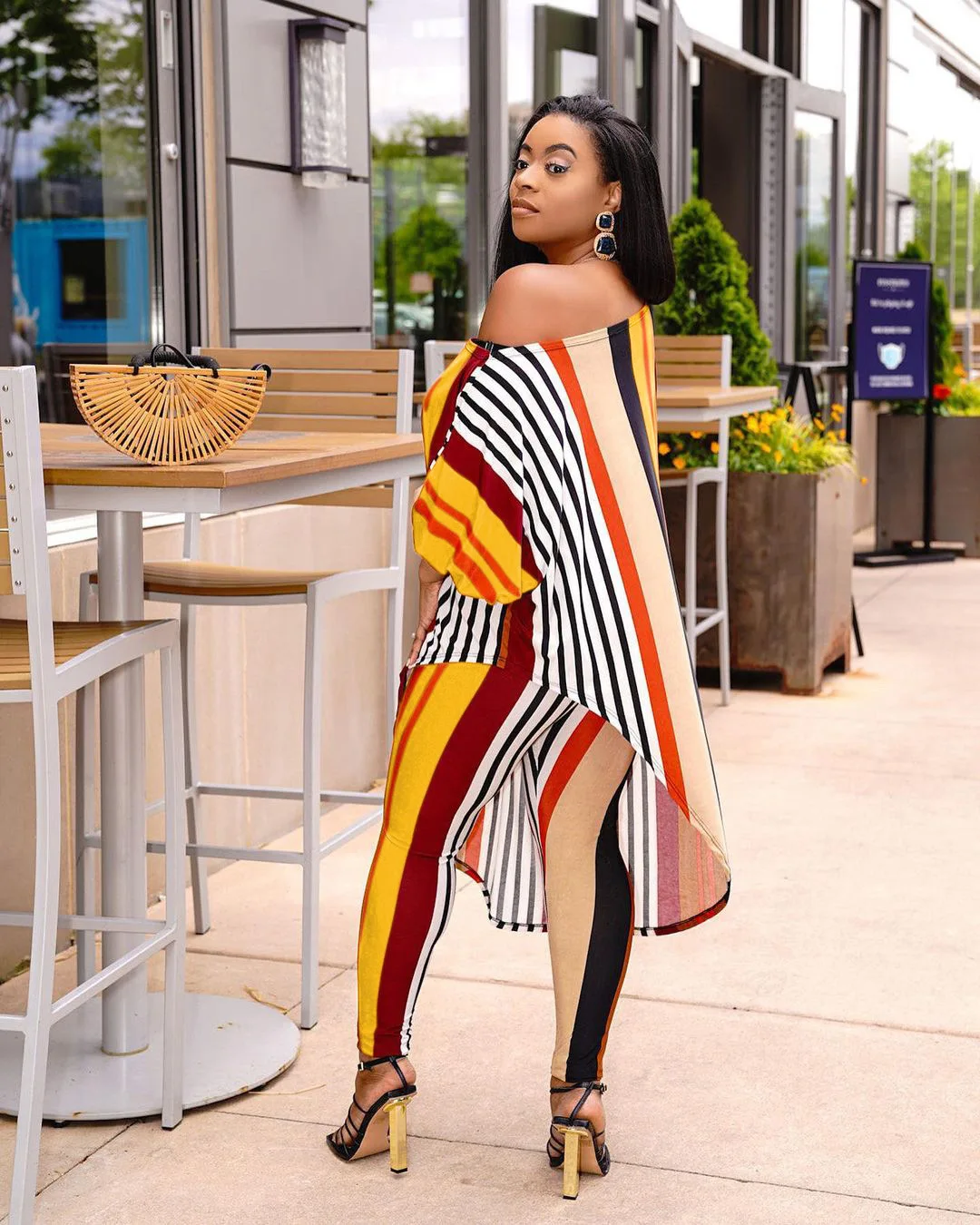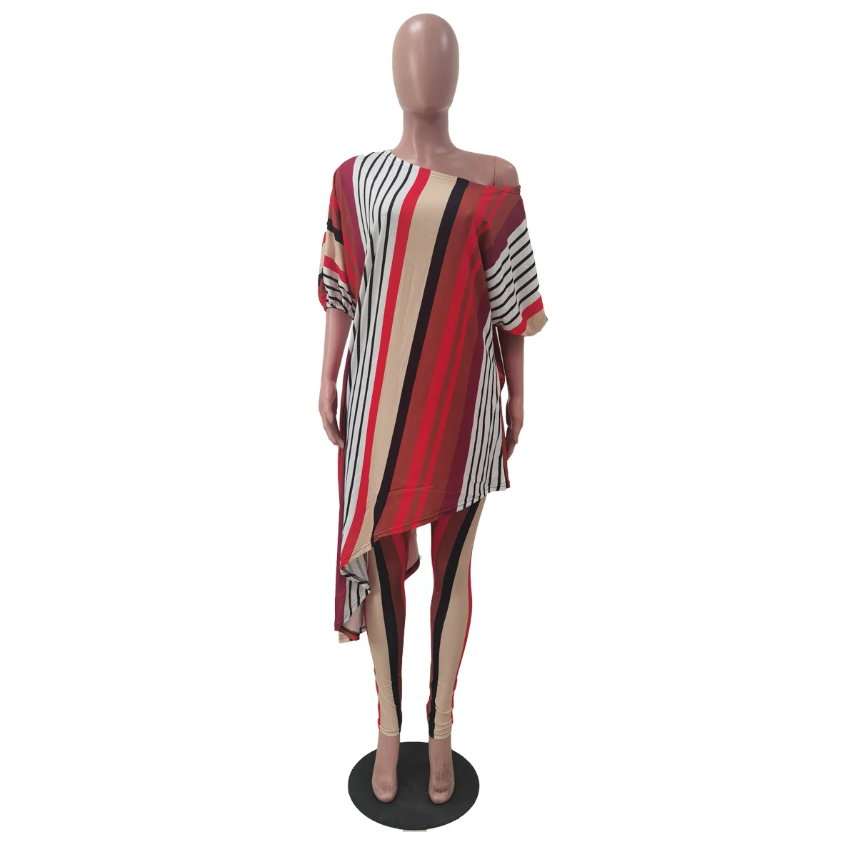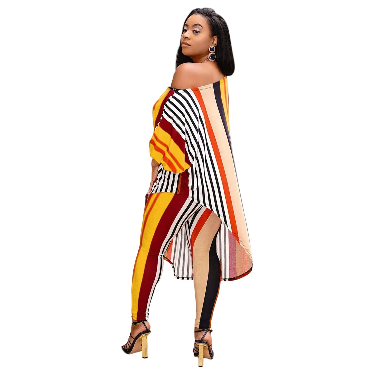 Осень 2021, Женский персонализированный повседневный комплект из двух предметов с диагональными плечами и полосками неправильной длины