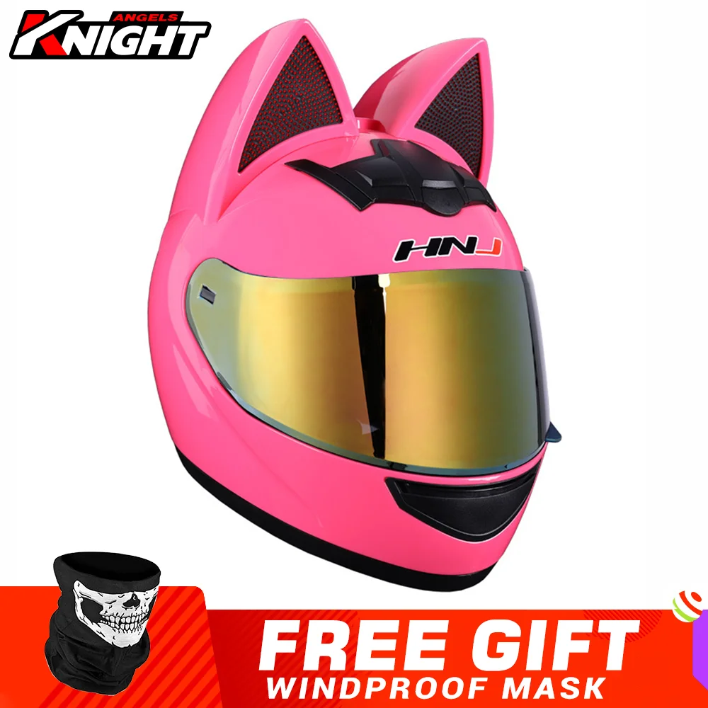 Мотоциклетный шлем HNJ, модульный двойной Съемный, всесезонный, дышащий, с кошачьими ушками
