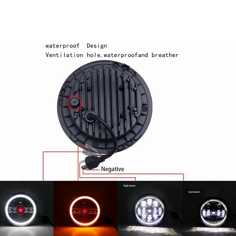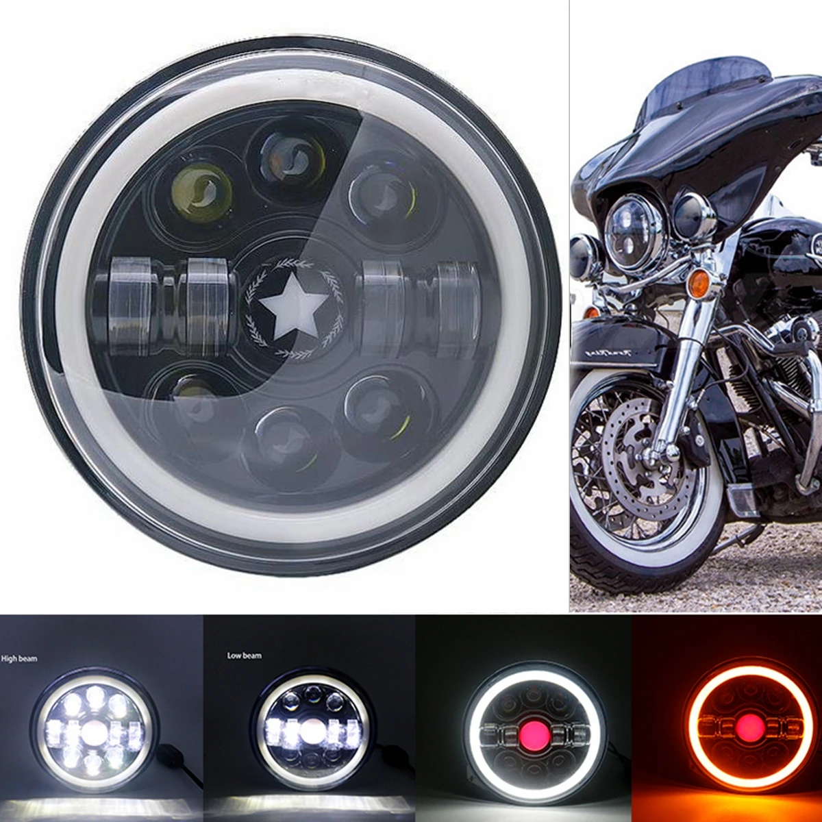 Для мотоцикла 7-дюймовые светодиодные фары с янтарным ореолом красная пятиконечная звезда фары подходит для Harley Honda Suzuki