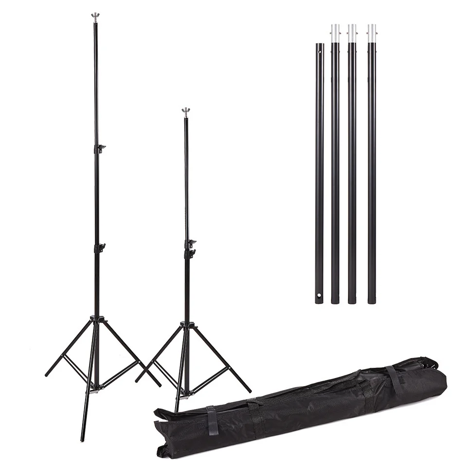 В комплекте также идет две прищепки и два фиксатора для фона. Но лампы очень слабые (очень-очень слабые) - не рассчитывайте на них сильно. В сумка помещаются только две стойки, весь комплект туда не влезет.