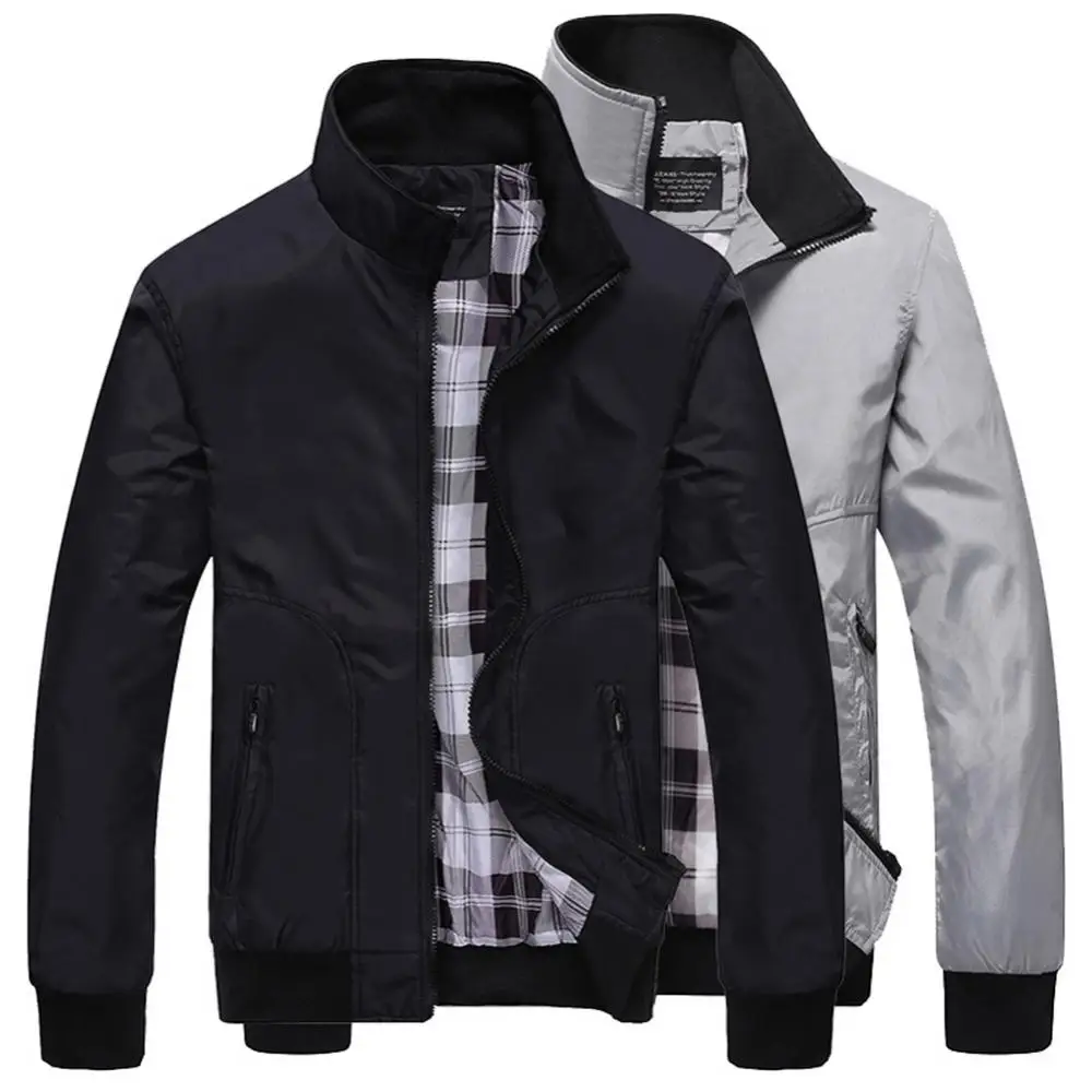 Мужская осенняя куртка на молнии с воротником-стойкой и карманами