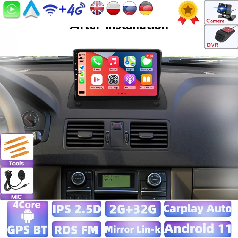 Автомобильное радио, мультимедийный видеоплеер, GPS-навигатор, 2 Din, 2 Гб + 32 ГБ, система Android 11 для Volvo XC90 2004-2014