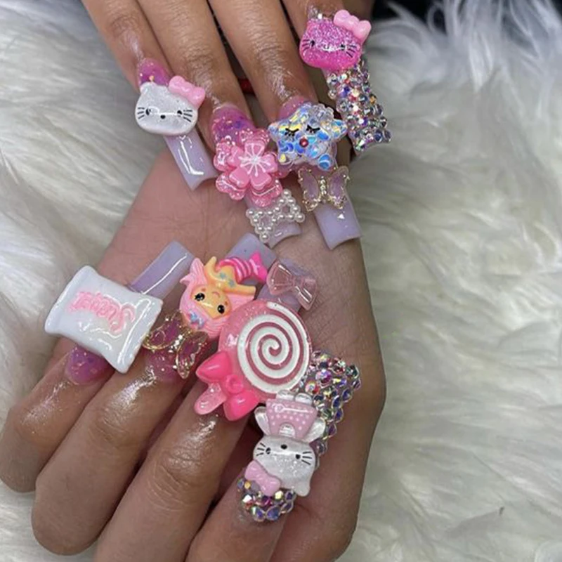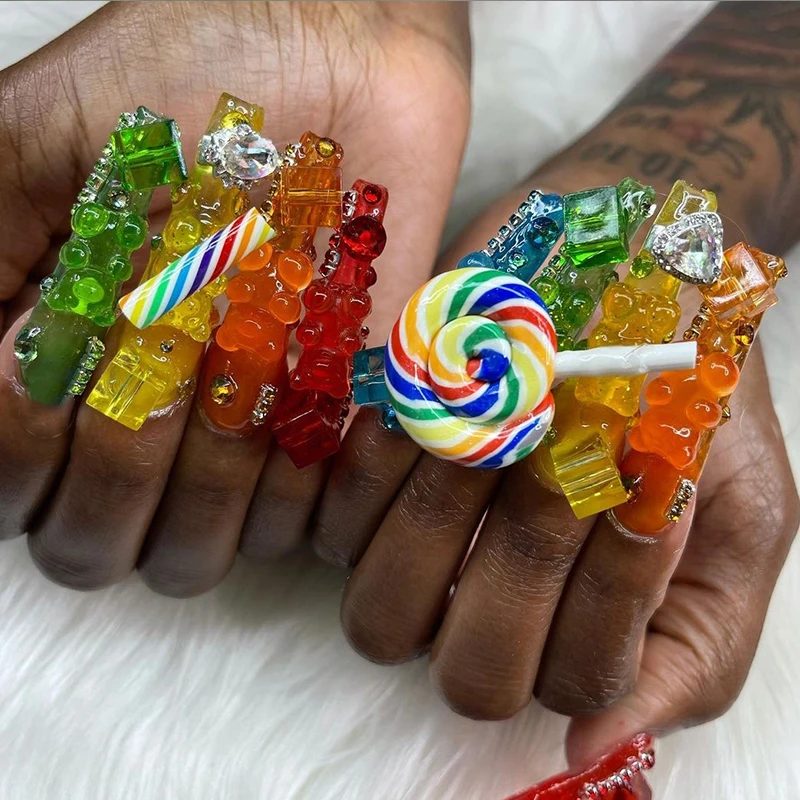 3D кавайные подвески для ногтей из смолы милый медведь конфеты смешанные украшения для ногтей Стразы Декоративные Инструменты для маникюра