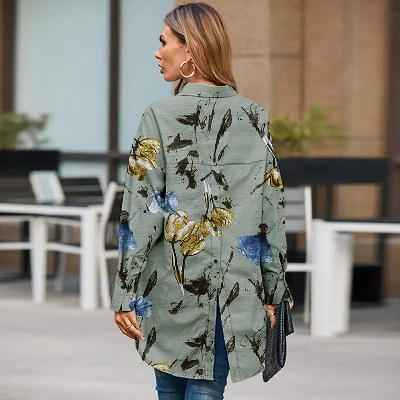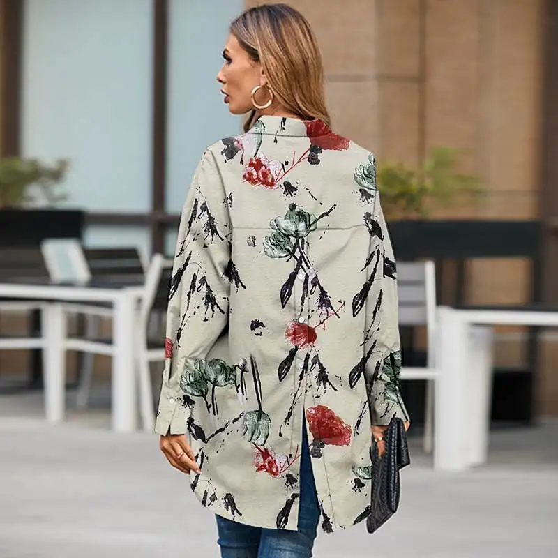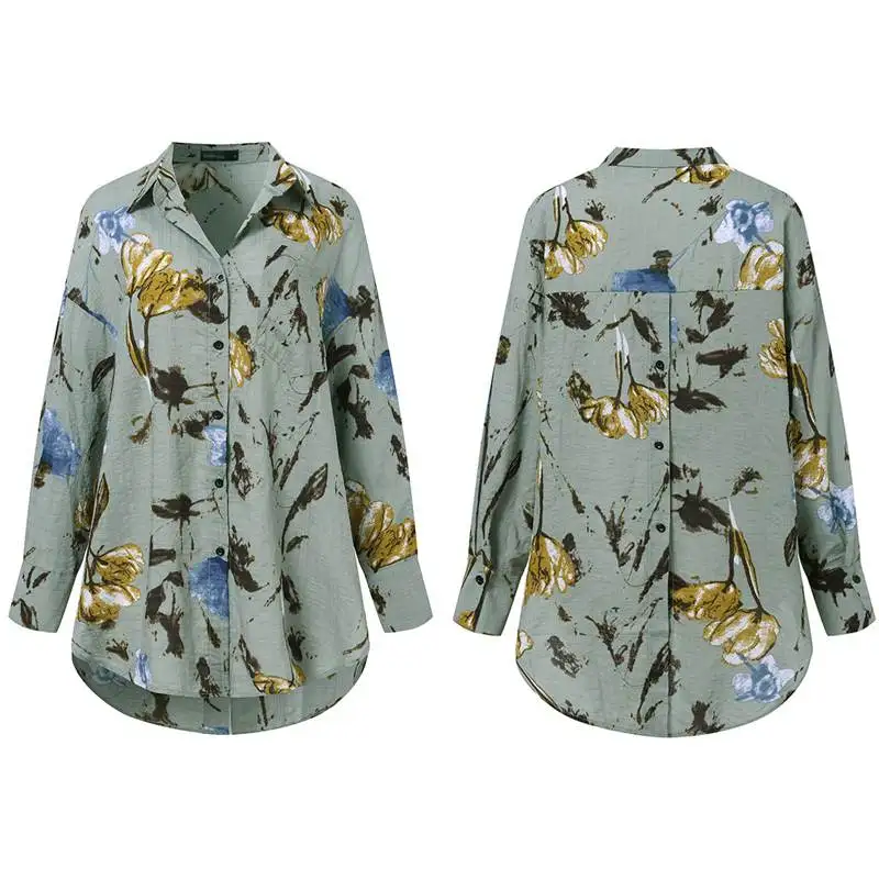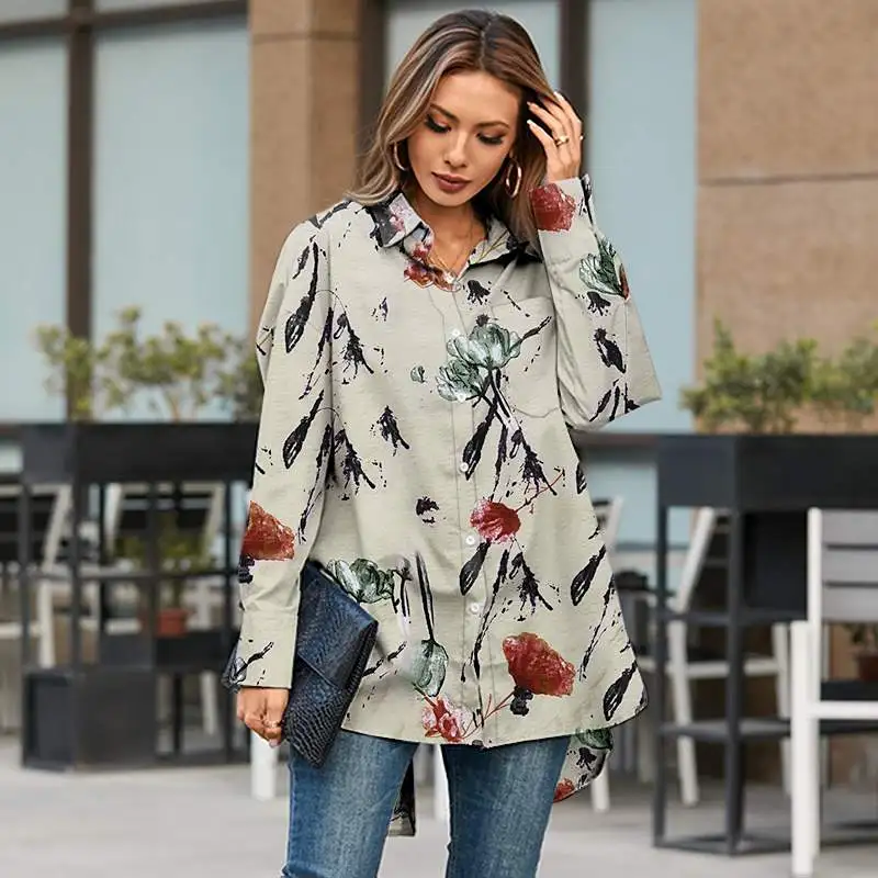 Женская рубашка с длинным рукавом, асимметричная, с цветочным принтом