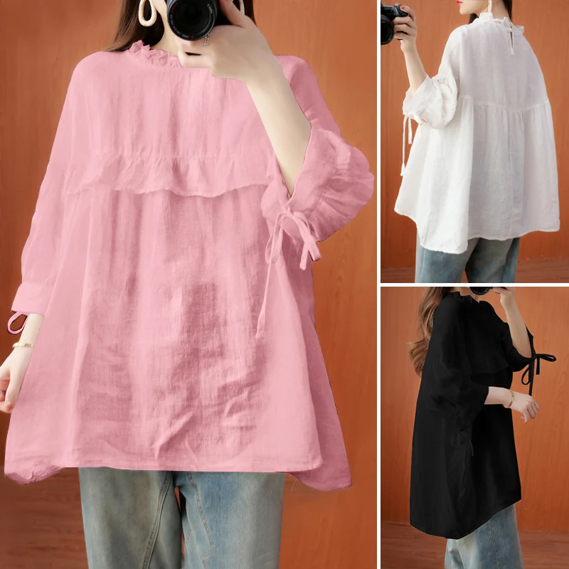 Посылка входит: 1 блузкаМатериал: 100% хлопокЦвета: черный, белый, розовыйДлина рукава: рукав три четвертиВырез: круглый вырезУзор: однотонныйПряжка-цепочка: пуговицы сзадиТолщина: тонкаяУкрашение: оборкиОсобенности: дизайн галстука на манжетахСтиль: Досуг, богемный, ретро, Европа, универсальный, литератураСезон: весна, лето, осеньПовод: семья, вечерние, свадьба, праздникВнимание:1. Реальный товар может немного отличаться по цвету по сравнению с изображениями на разных мониторах компьютеров. Будьте осторожны при обращении, спасибо.2. Возможна погрешность в 1-3 см из-за ручного измерения. Приносим извинения за неудобства.3. Пожалуйста, ориентируйтесь на реальный товар, изображения модели только для справки.4. Внимание! Пожалуйста, внимательно проверьте таблицу размеров перед размещением заказа.