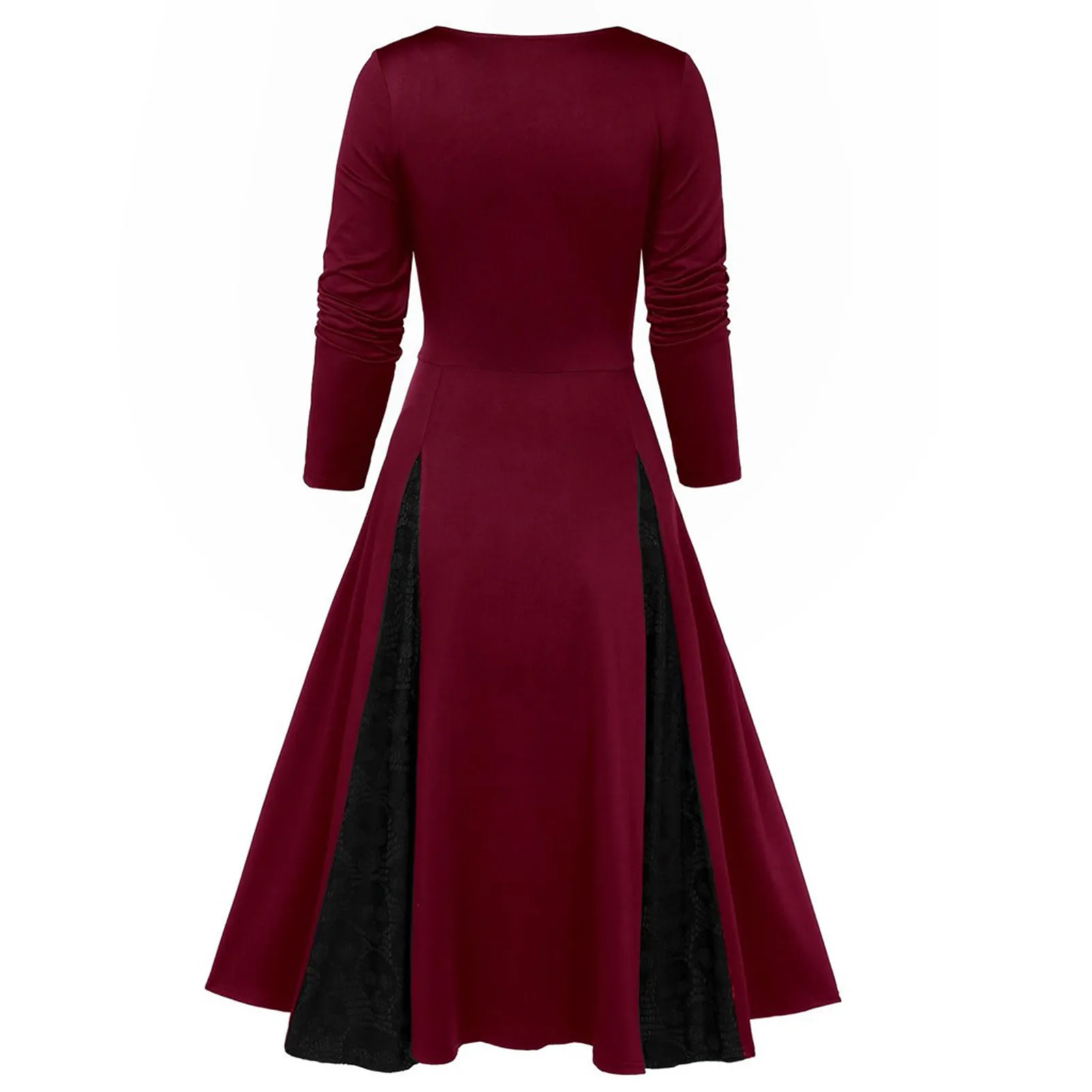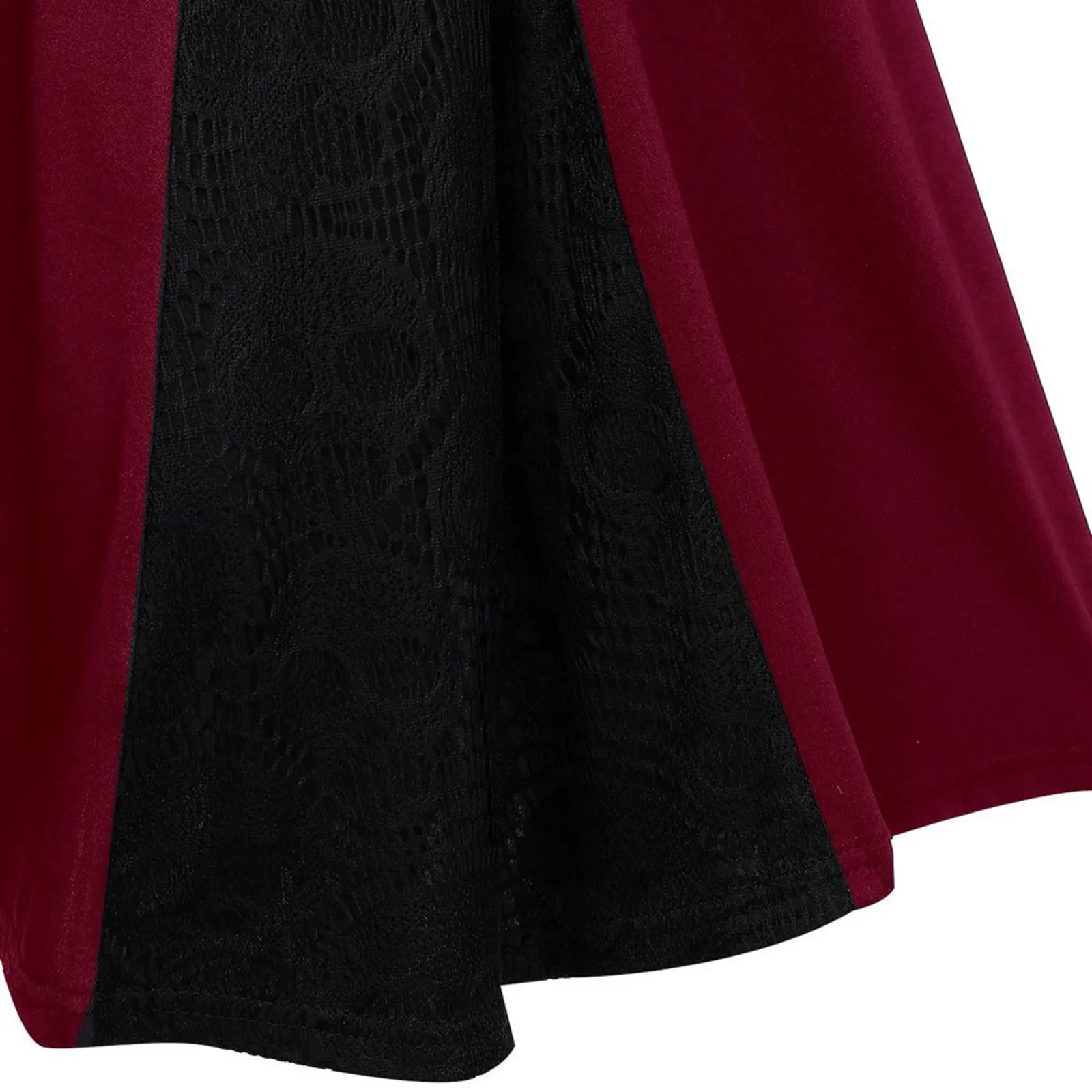 Женское платье на Хеллоуин, элегантное готическое однотонное кружевное платье с черепом и длинным рукавом, винтажные Вечерние платья vestido de mujer