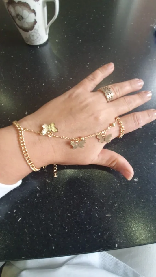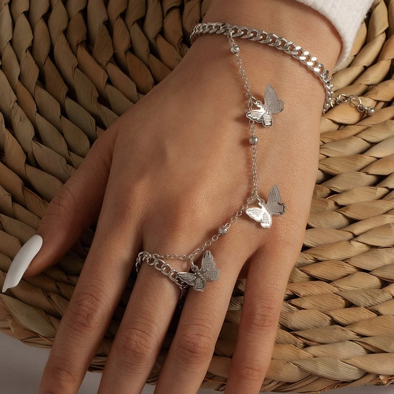 Женский модный браслет с бабочкой и кольцом на палец, цепочка золотого и серебряного цвета на запястье, ювелирное изделие в эстетике 2021
