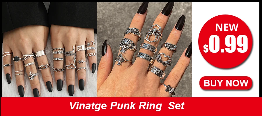 Набор колец для женщин, в стиле панк, в готическом и винтажном стиле