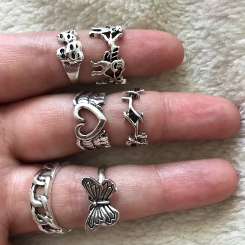 Готический винтажный набор в виде сердца для женщин и мужчин, забавные креативные серебряные кольца в виде животных, пчелы, черепа, хип-хоп ювелирные изделия
