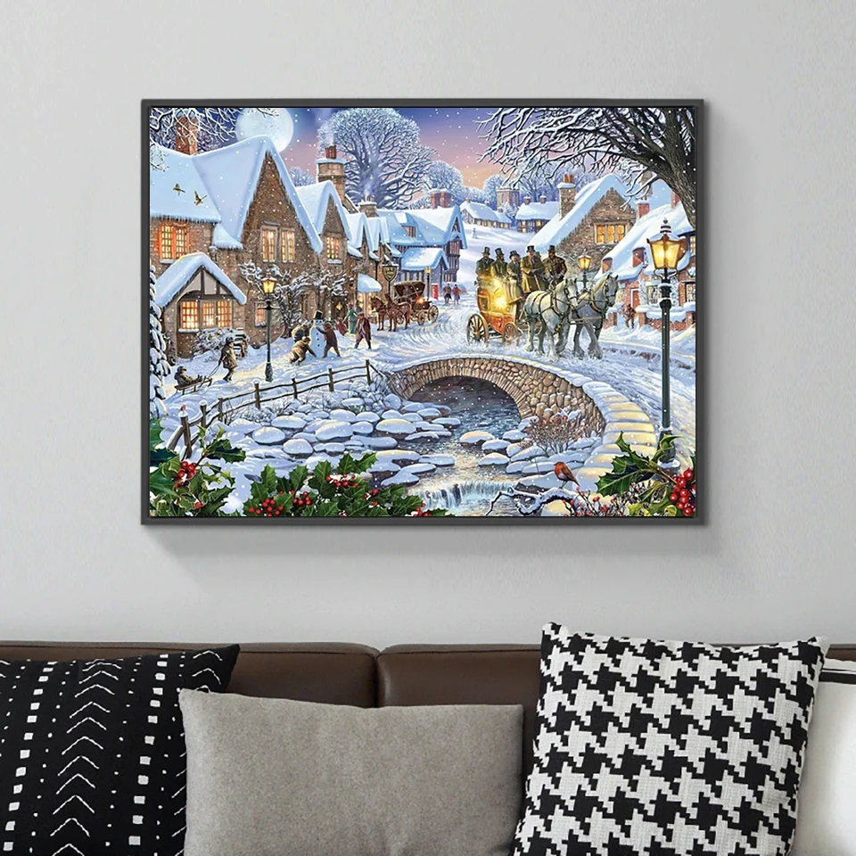 5D полноразмерная квадратнаякруглая Алмазная вышивка зимний Снежный...