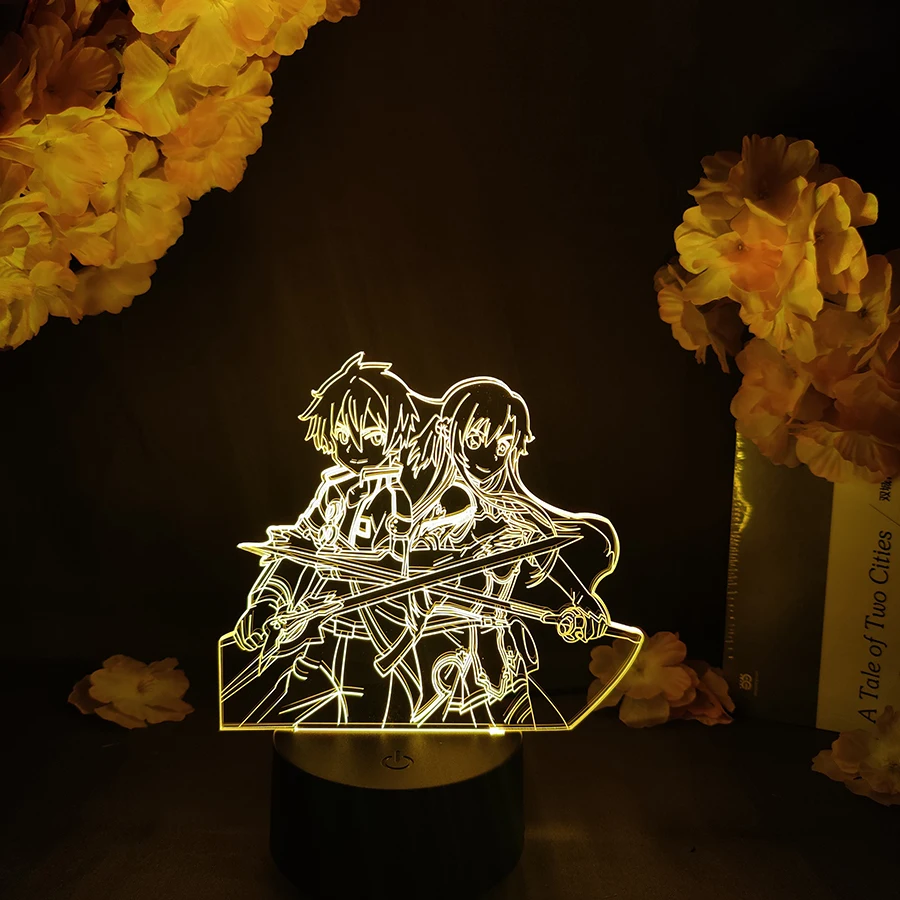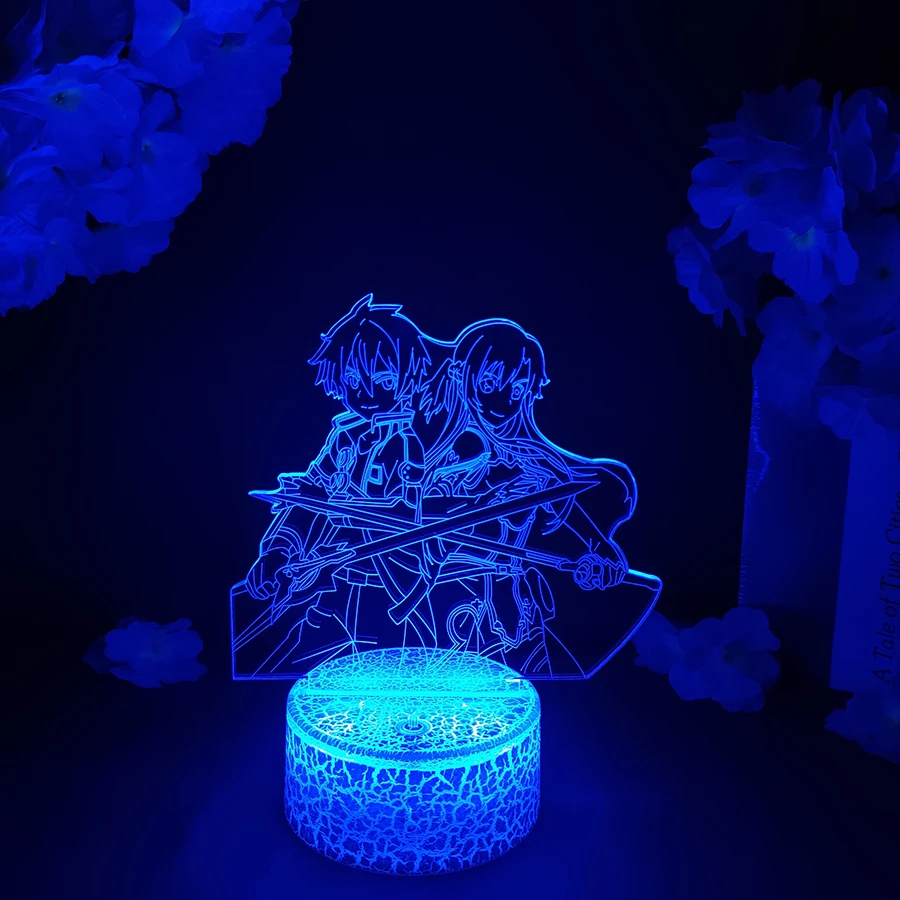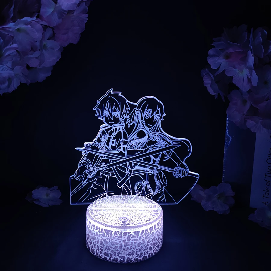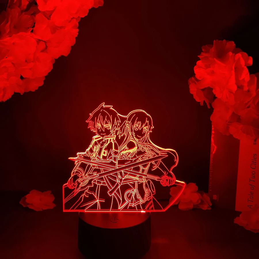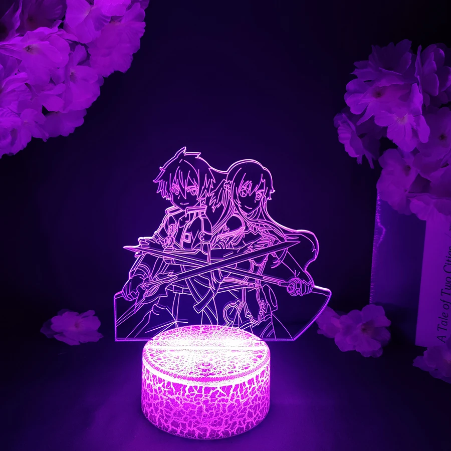 KIRITO And ASUNA светодиодный светильник аниме меч арт онлайн фигурка Ночник светильник светодиодный сенсор сенсорное управление изменение цвета Манга подарок друзьям