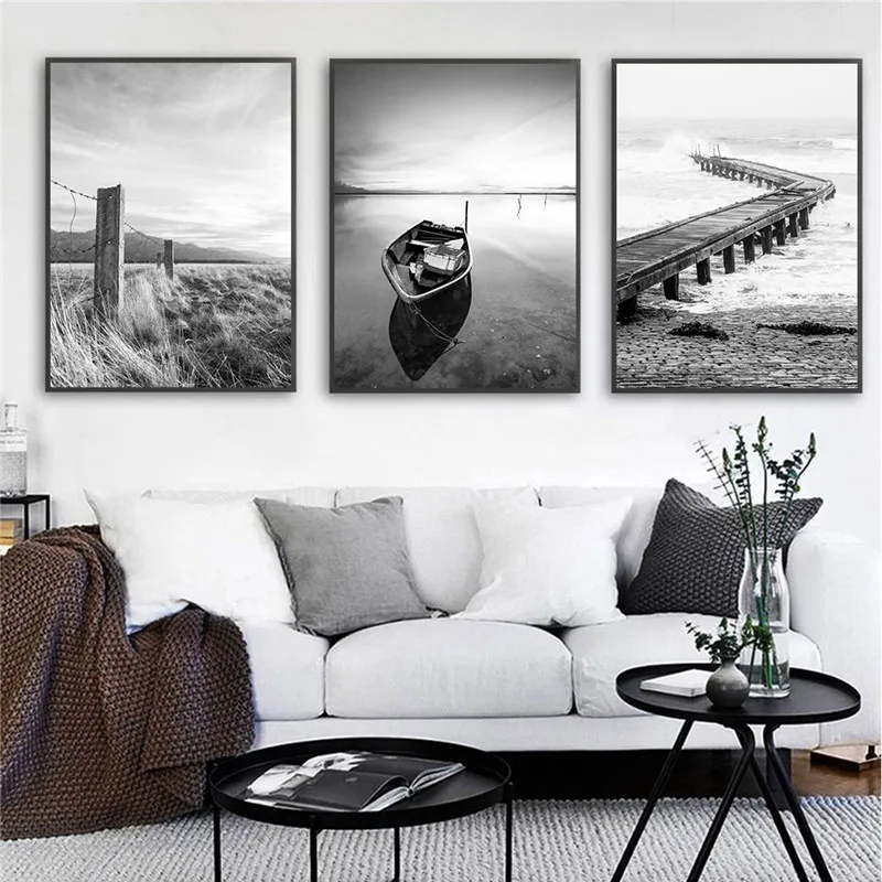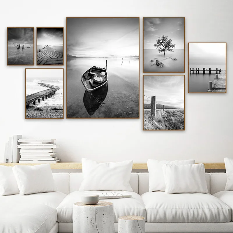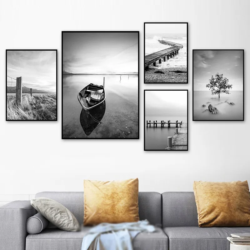 Пейзаж, холст, живопись, плакат, черно-белый мост, Настенная картина, скандинавский минималистический настенный рисунок для гостиной TB220