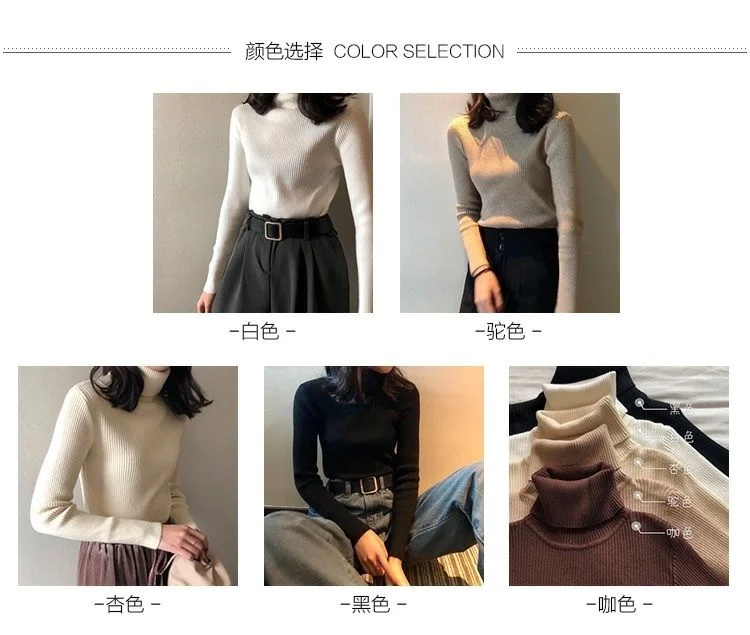 Женский свитер, пуловер, осенне-зимнее пальто, облегающая внутренняя одежда, свитер с высоким воротником и длинными рукавами, женский свитер, женские свитера